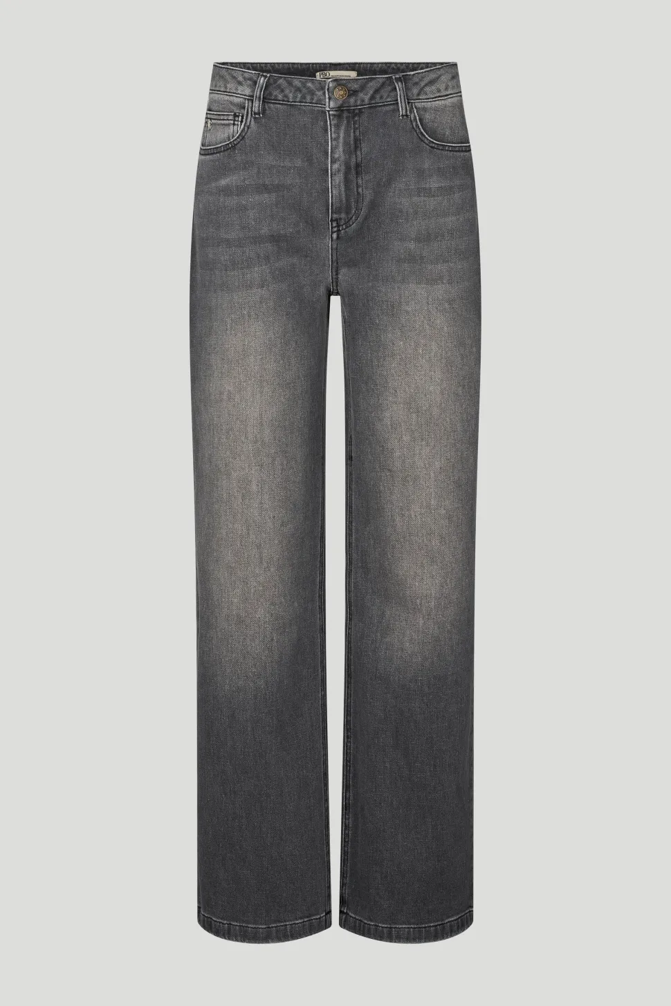 Lia-farkuissa on väljä, suora istuvuus harmaata pestyä denimiä, korkea vyötärö ja klassinen viisitaskuinen malli. Mukava ja ajaton valinta arkikäyttöön.