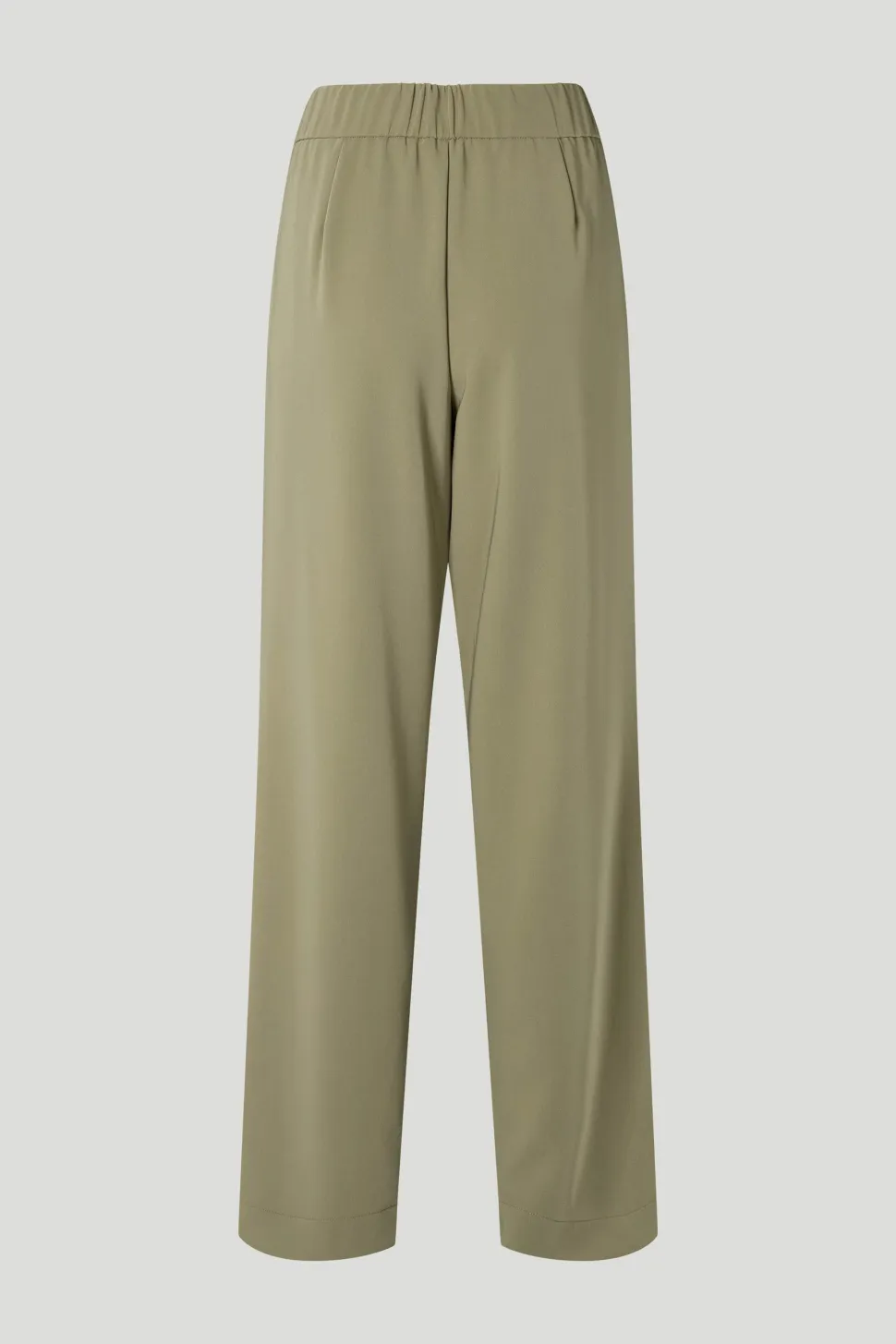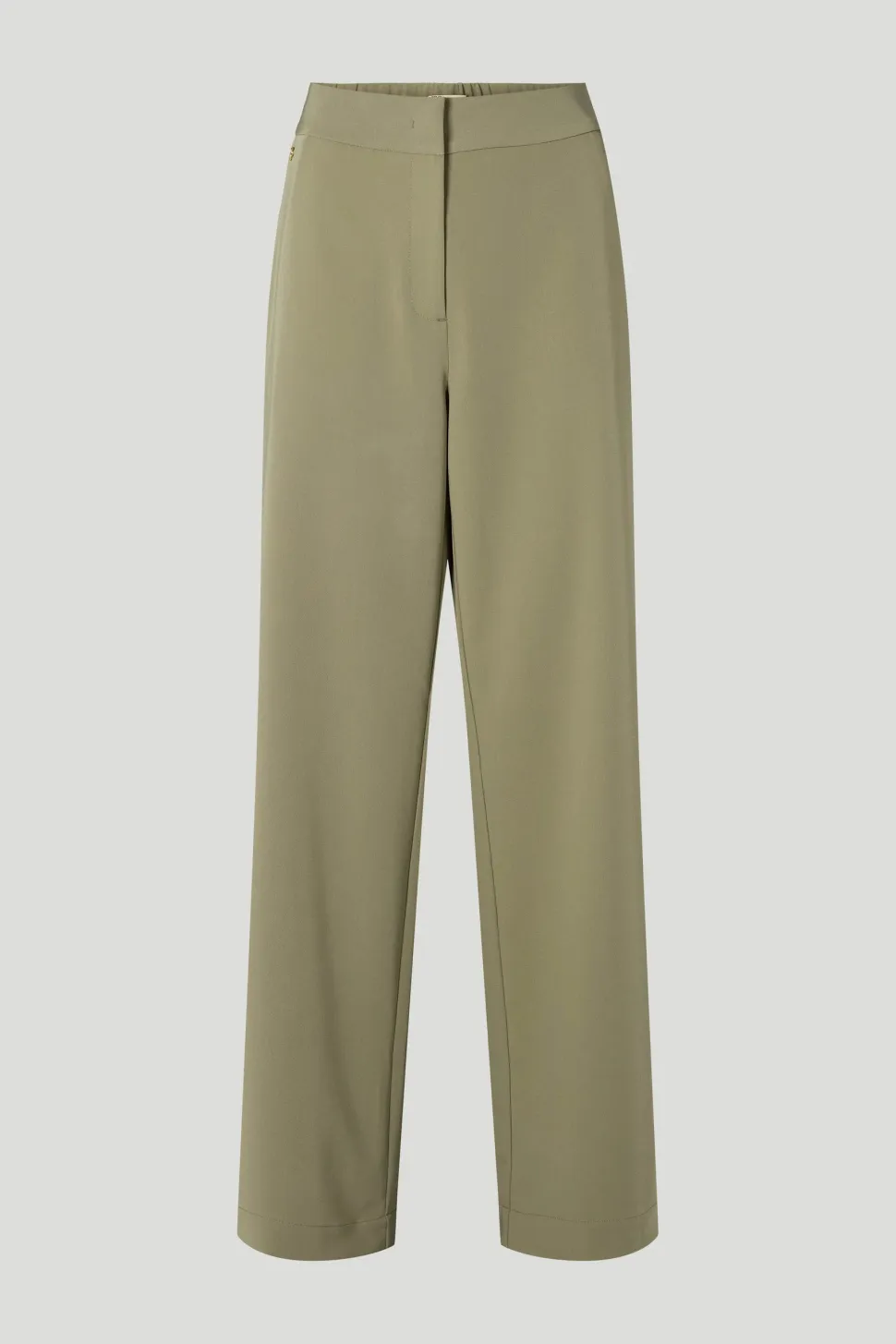 Malto-housut ovat suoralinjaiset ja väljät, ja niiden joustava vyötärö sekä selkeä siluetti tekevät niistä mukavat ja monikäyttöiset. Housut sopivat yhtä hyvin arkeen kuin toimistoon, ja niiden siistit linjat on helppo yhdistää niin juhlaviin kuin rentoihin yläosiin. Yhdistä housut saman sarjan paidan kanssa naiselliseen kokonaisuuteen tai klassisen kauluspaidan kanssa selkeään tyyliin.