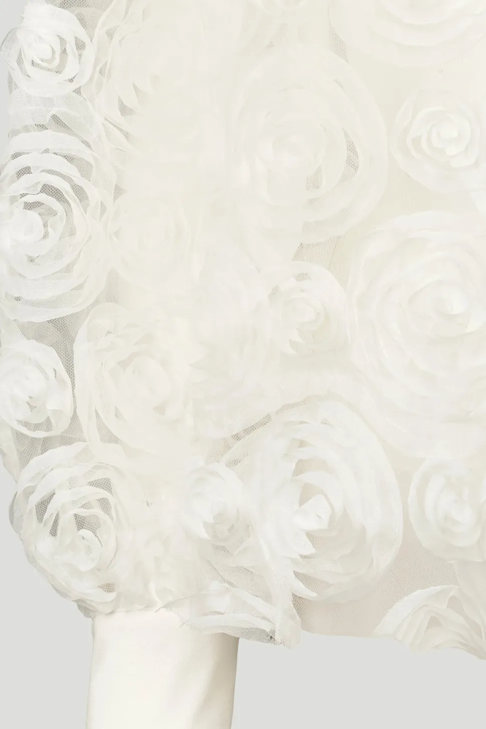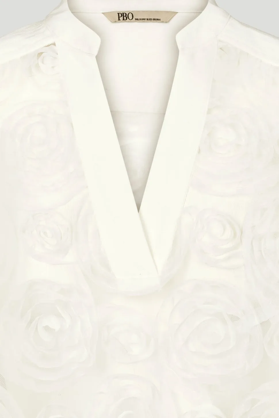 Kauniissa puserossa on V-aukko ja pitkät hihat. Ommellut ruusukoristeet luovat kolmiulotteisen ja romanttisen vaikutelman.