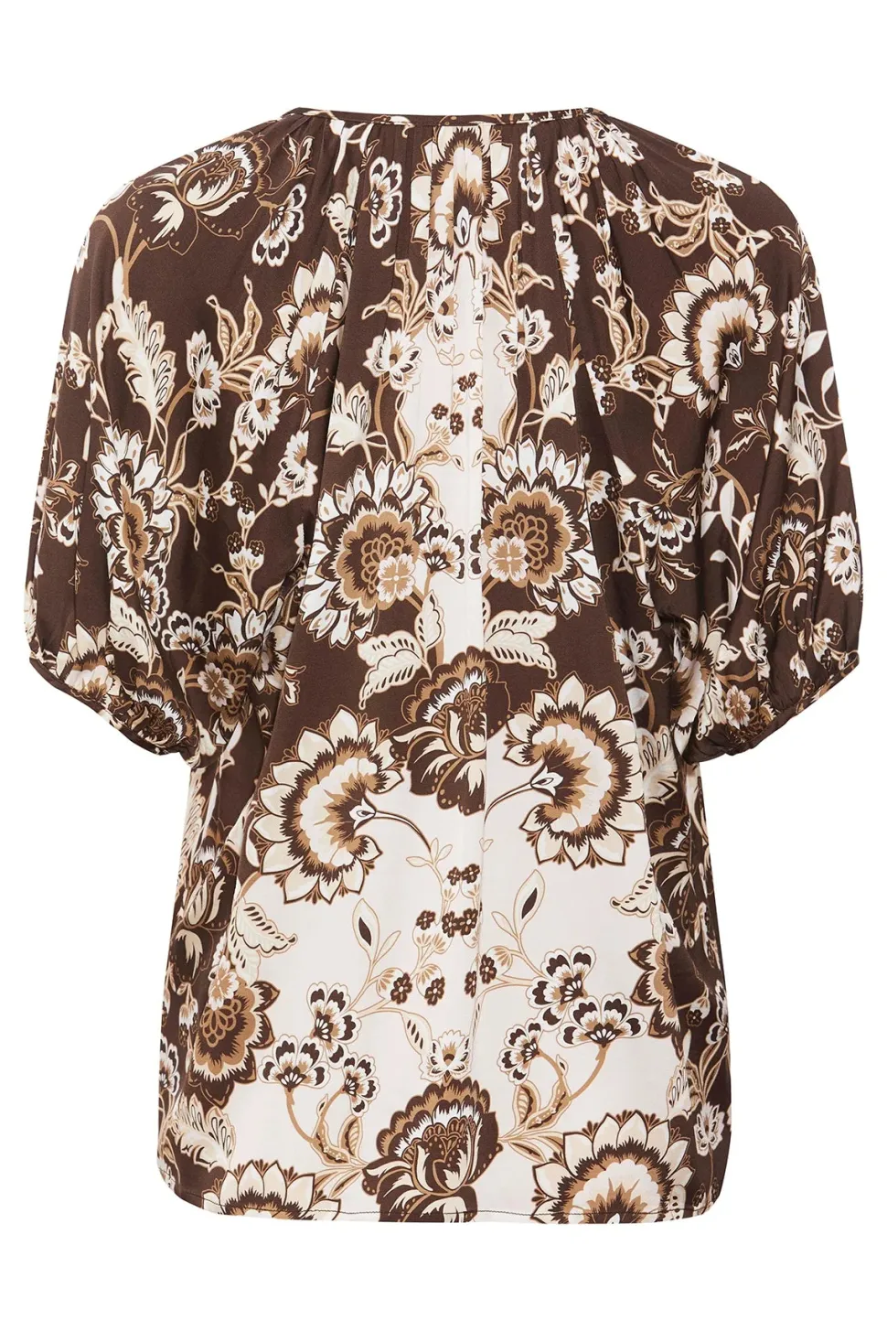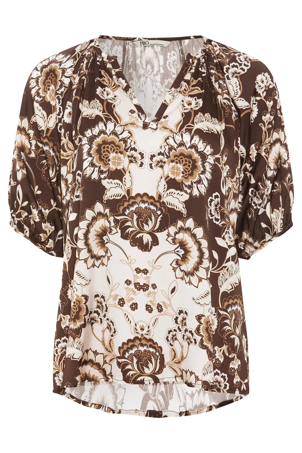 Puserossa kaunis maanläheinen kukkaprintin, joka lisää ripauksen luonnon inspiroimaa charmia.
