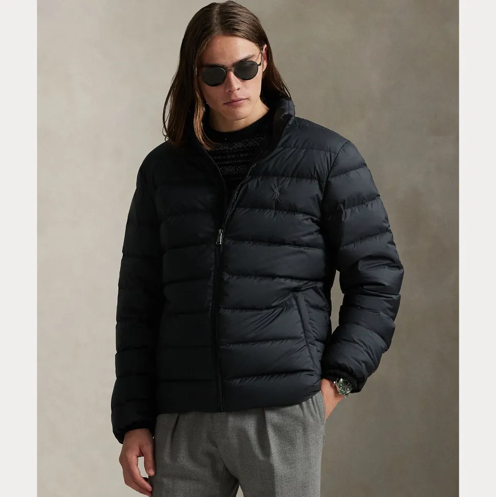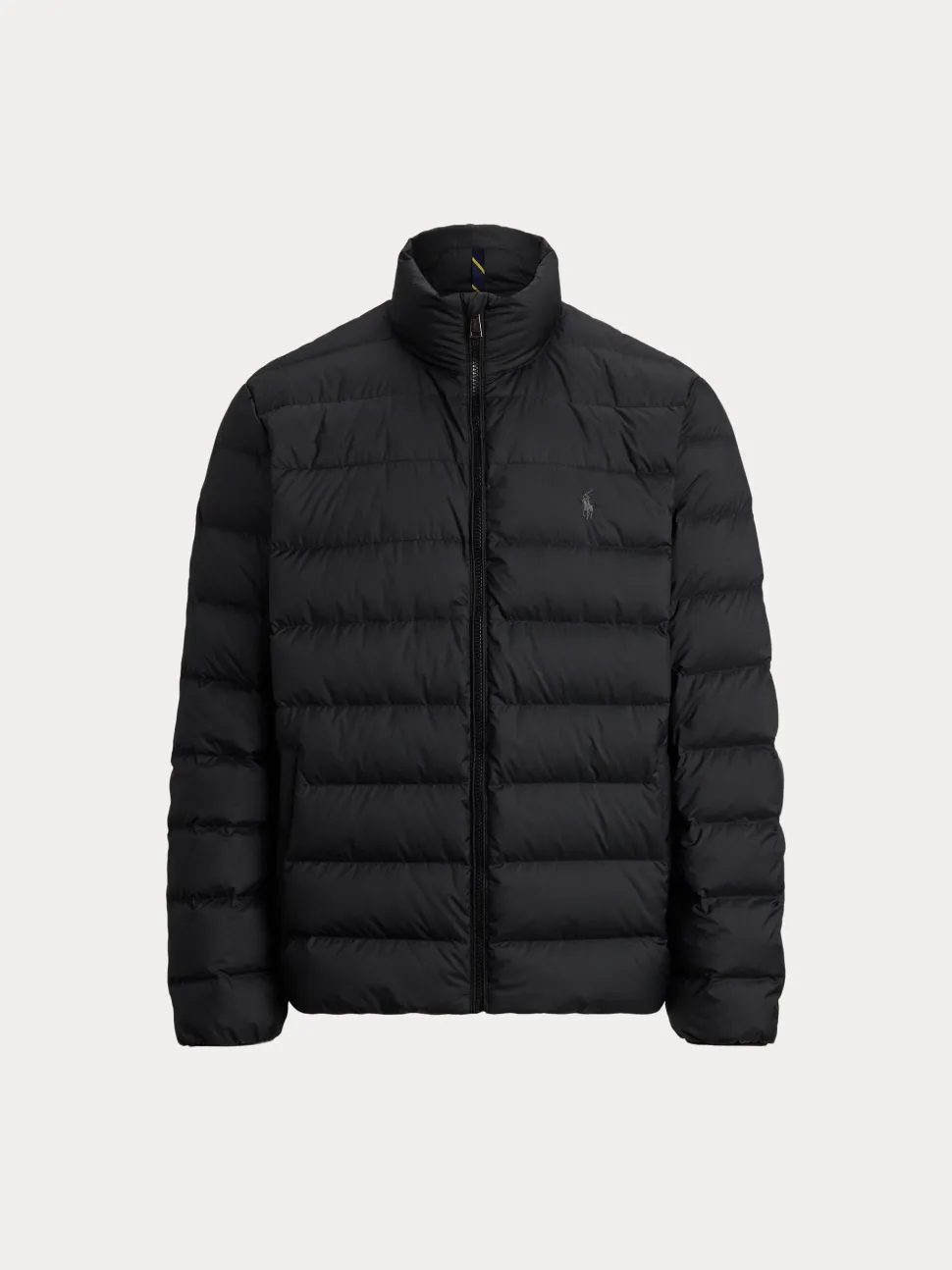 Kokopitkä vetoketju edessä ja läppä yläosassa hiertymien estämiseksi. Mittatilaustyönä tehdyt vetoketjun vetimet ja kiristysnyörillä suljettavat stopparit, joissa on ”Polo”-logo.