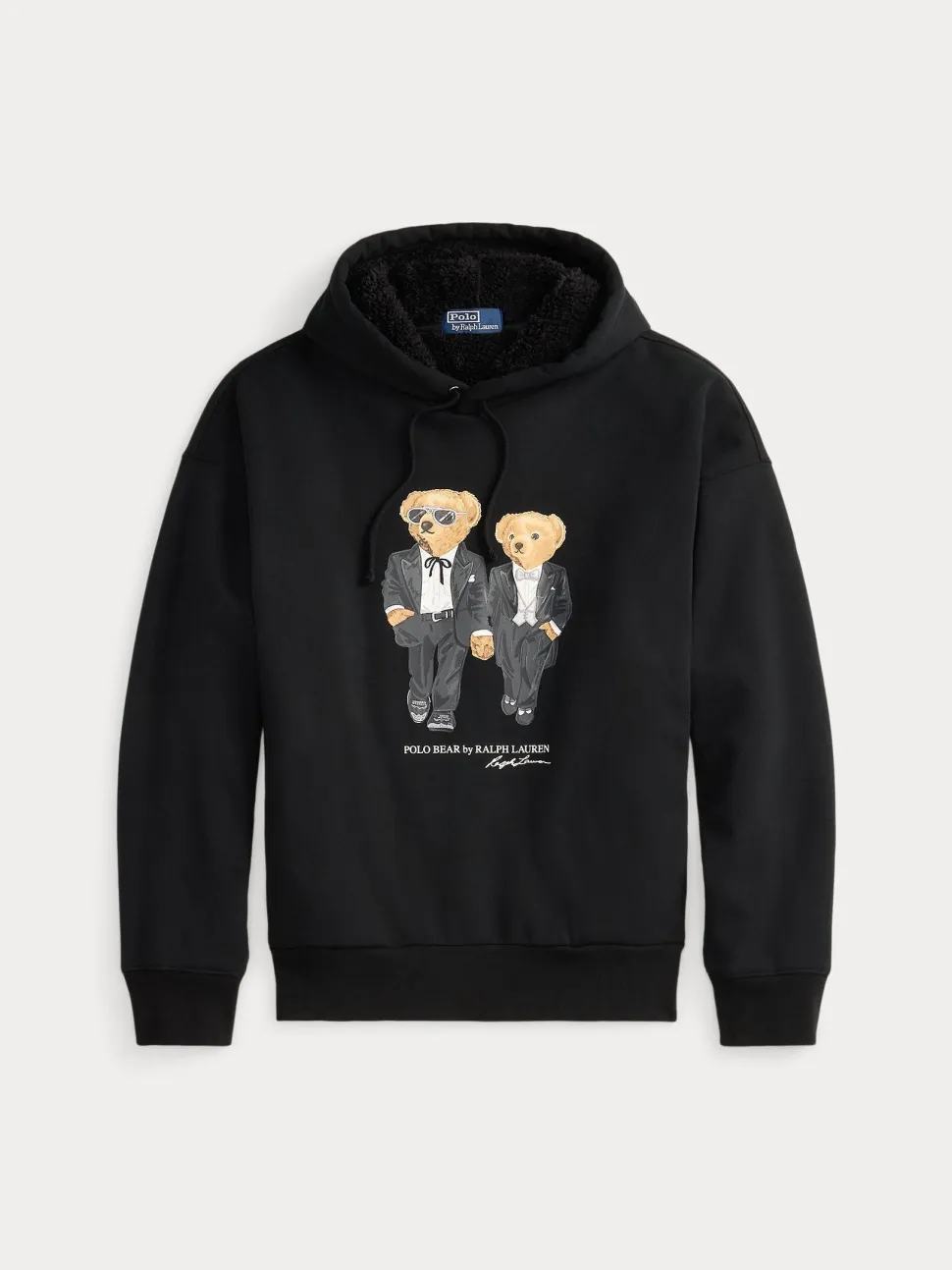 Tämä puuvillasekoitteinen huppari, jossa on korkeanukkainen fleecevuori, on painettu etupuolelle kahdella smokkityyliin pukeutuneella karhulla.