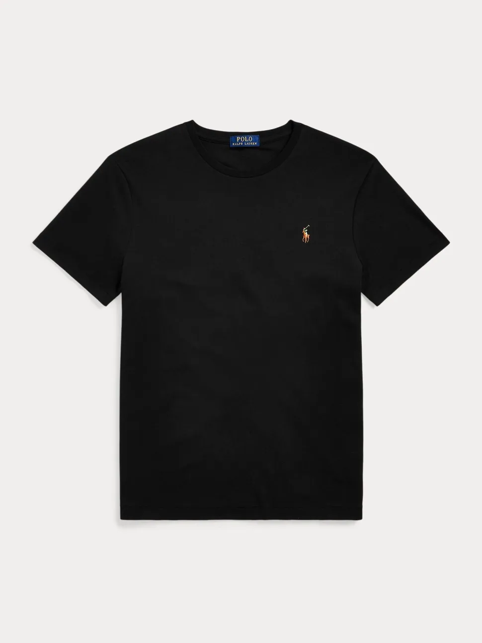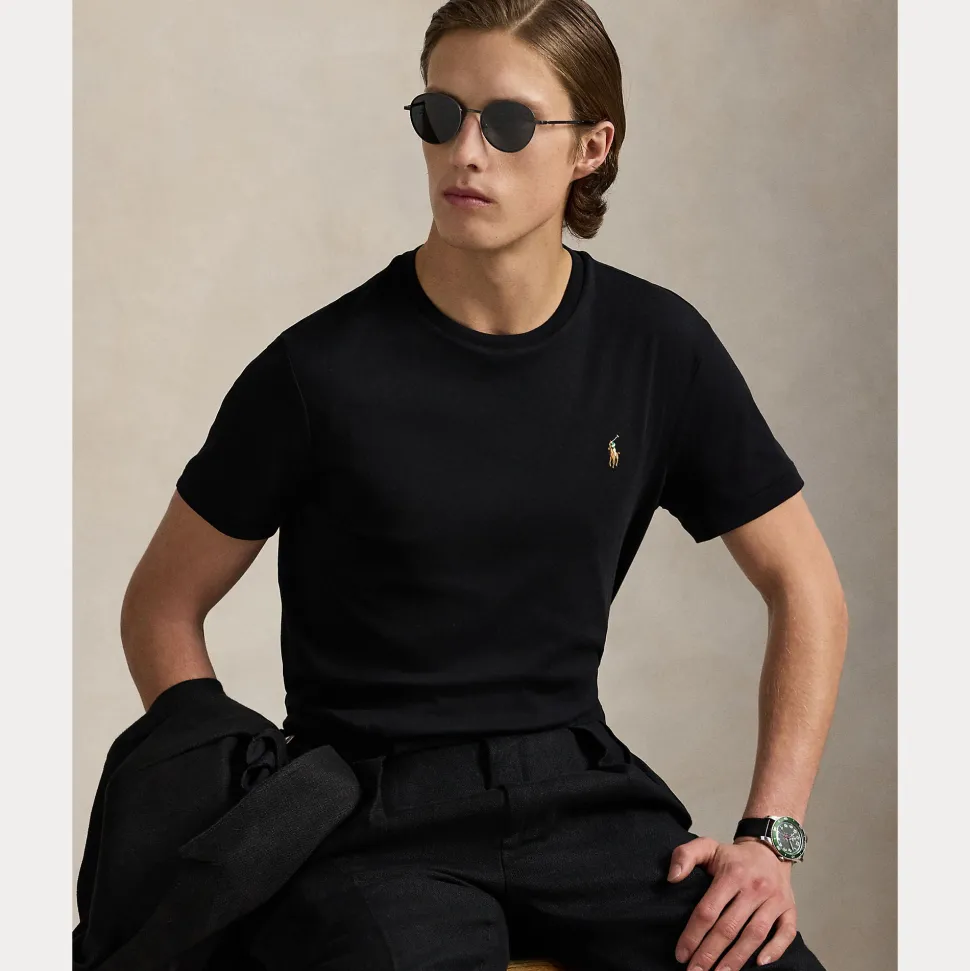 Polo Ralph Laurenin musta t-paita on valmistettu 100 % pehmeästä puuvillasta, joka tarjoaa hengittävän ja miellyttävän käyttökokemuksen. Klassinen pyöreä pääntie, lyhyet hihat ja regular fit -istuvuus tekevät siitä monikäyttöisen arjen luottovaatteen. Pienikokoinen, tunnistettava Polo Pony -logo rinnassa viimeistelee ikonisen ilmeen.