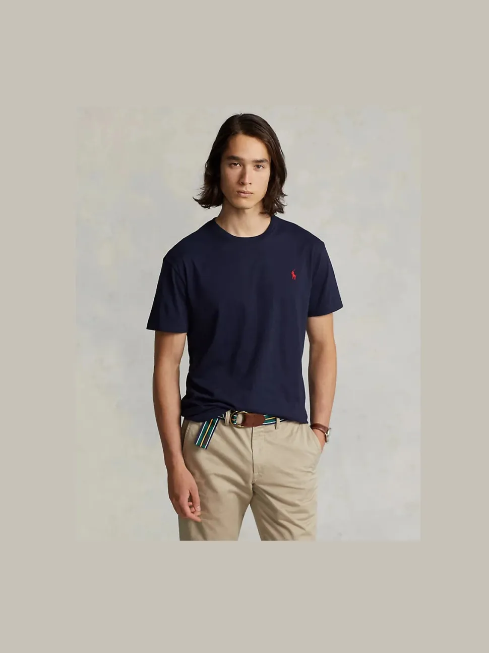 Ajaton t-paita räätälöidyllä slim fit istuvuudella, hieman tyköistuvampi rinnasta ja vyötäröstä. Polo Ralph Laurenin ikonen logo brodeerattuna rintaan.
