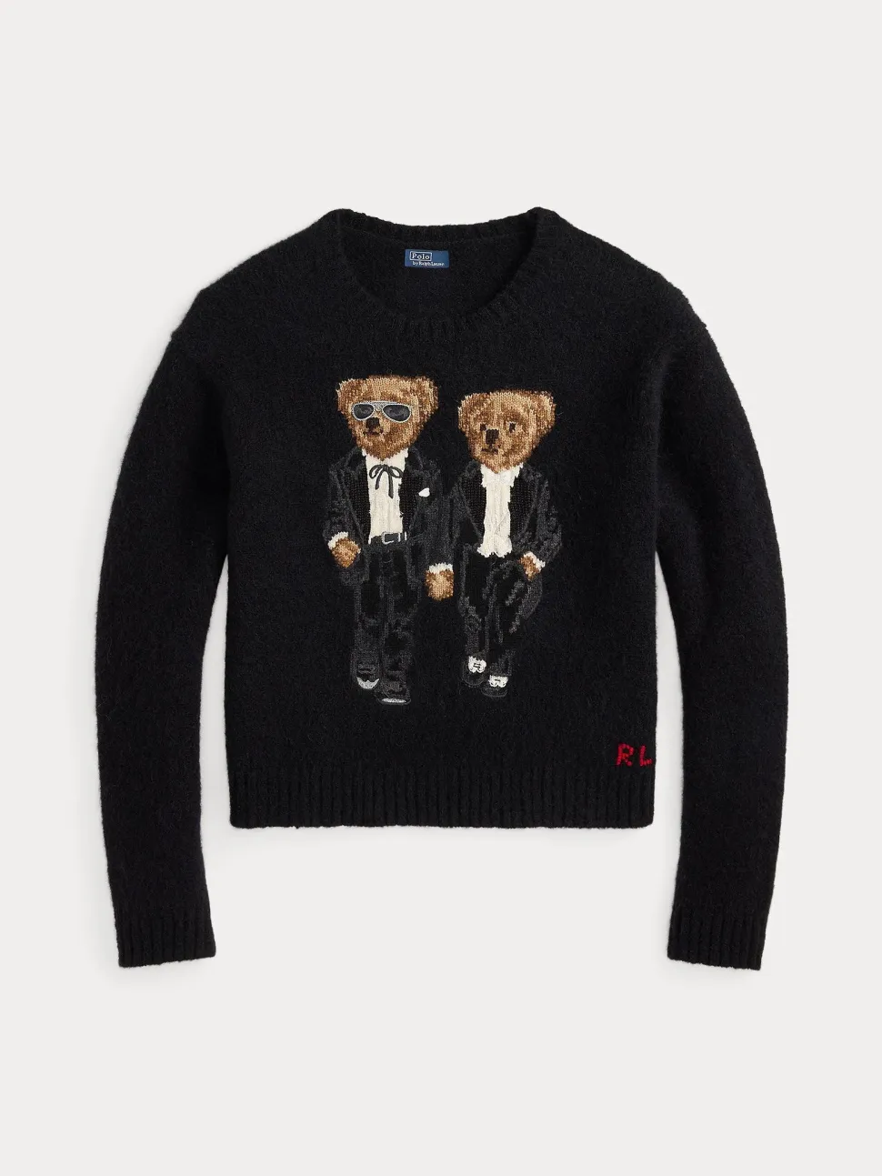 Tämä erikoispainosneule yhdistää yli 15 lankaa ja kuvaa kahta smokkiasuista karhua. Grafiikka heijastaa erityistilaisuuden eleganssia ja jännitystä, ja se on saanut inspiraationsa ikonisesta valokuvasta herra ja rouva Laurenista palkintogaalassa 70-luvun lopulla.