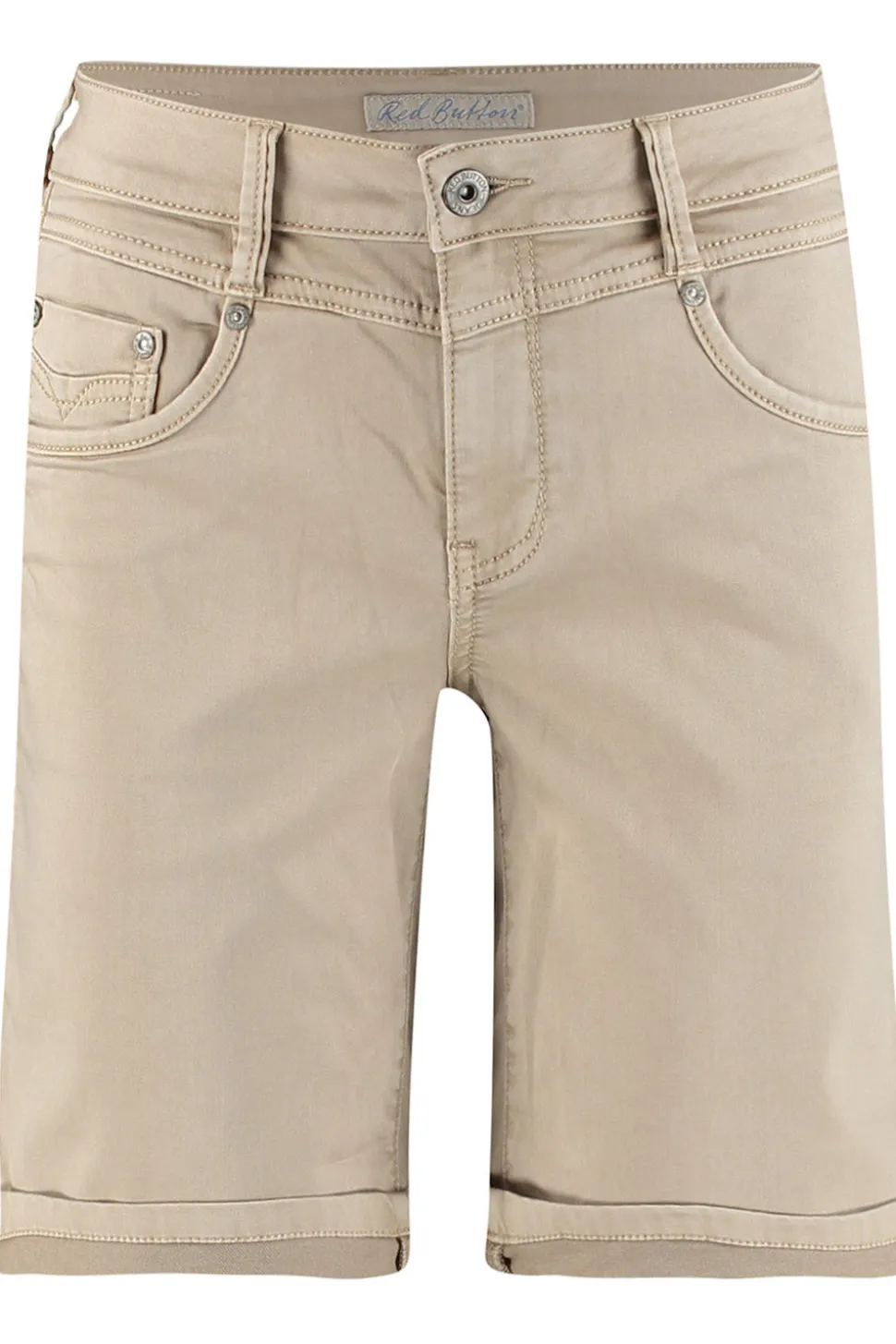Todella joustavat ja mukavat naisten kangasshortsit, viisitaskumalli, edessä vetoketju ja nappi, normaali vyötärön korkeus.