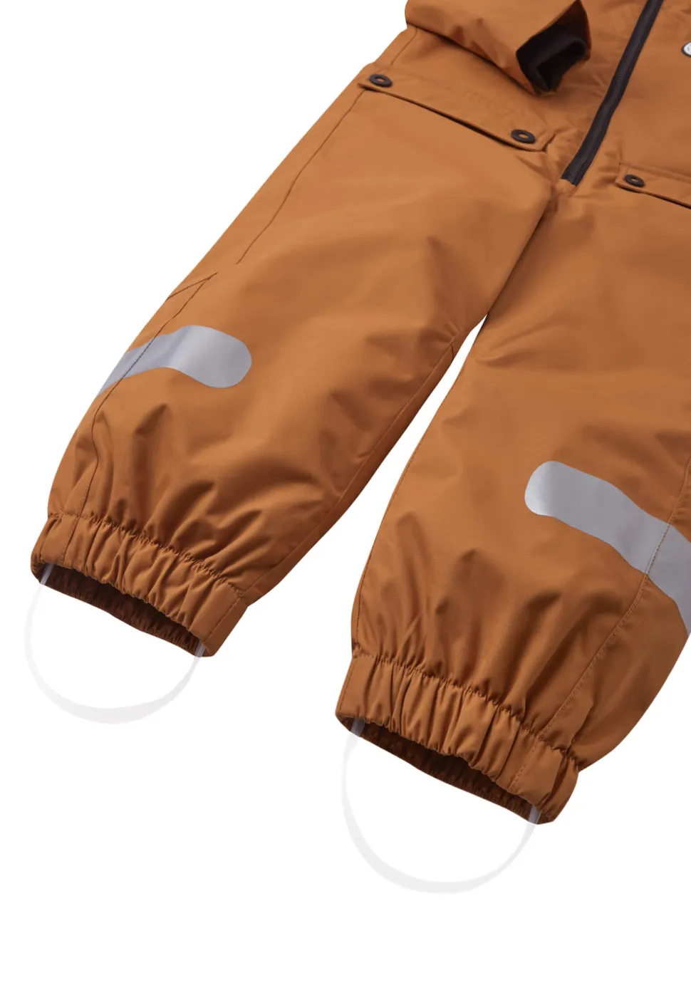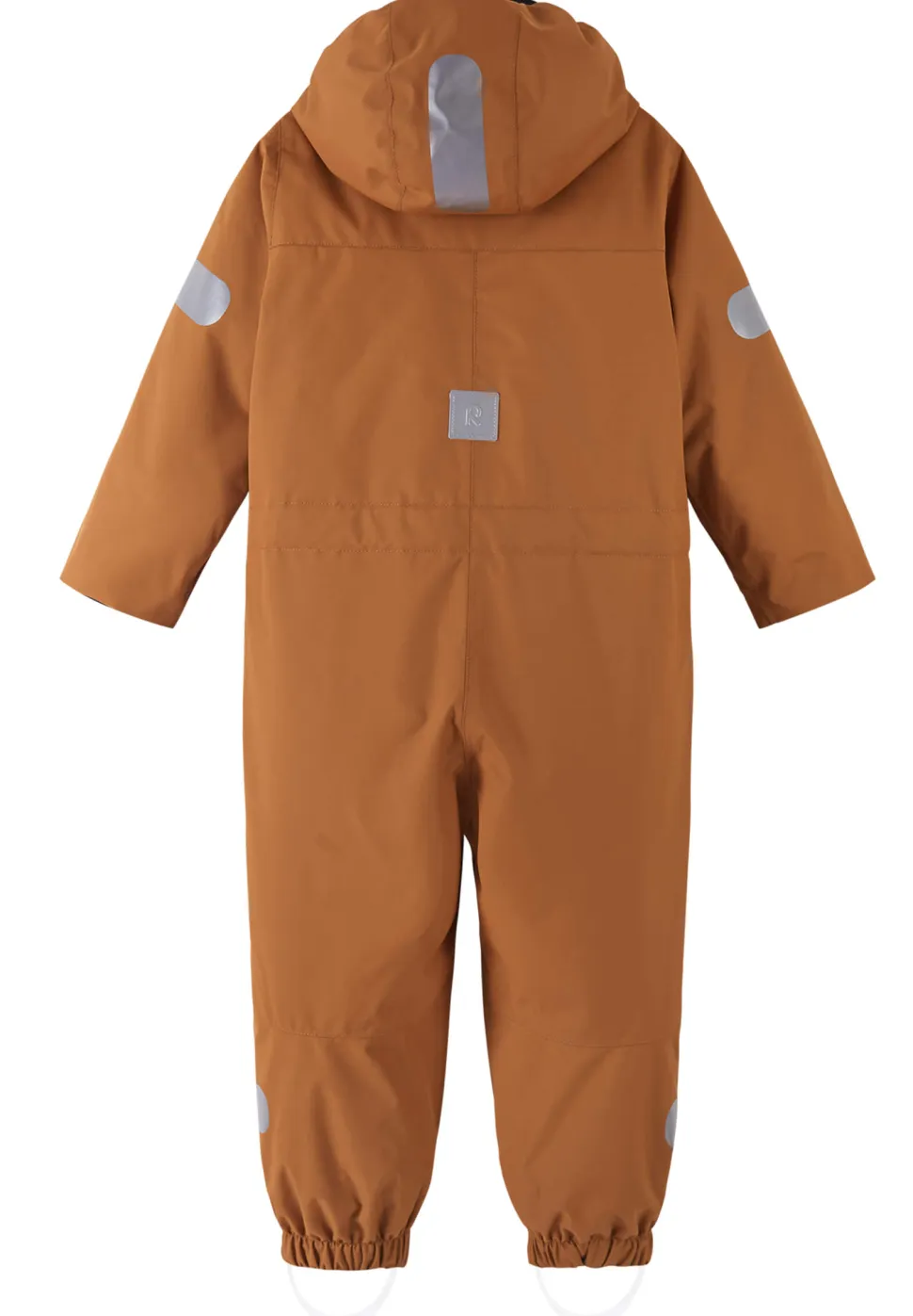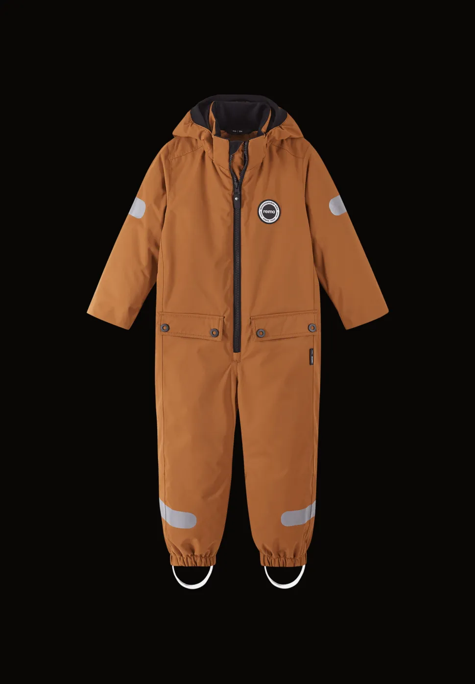 Lasten kevyesti topattu välikausihaalari on saanut innoituksensa Reima 70-luvun tuotteista. Haalarin kaikki saumat on teipattu vedenpitäviksi, ja kierrätyskuitua sisältävä materiaali hylkii vettä ja likaa. Sileä vuori liukuu mukavasti pukiessa. Neppareilla kiinnitetty huppu on turvallinen, sillä se irtoaa helposti jäädessään johonkin kiinni. Vyötäröä voi säätää haalarin sisältä ja kestävät silikoniset jalkalenkit pitävät lahkeet paikoillaan. Läppätaskut ja suuret heijastavat yksityiskohdat viimeistelevät tämän retrohenkisen haalarin tyylin. Kaikki saumat teipattu vedenpitäväksi Kestävä materiaali bluesign® hyväksytty pää- ja vuorimateriaali Sisältää sertifioituja kierrätettyjä kuituja Vettä ja likaa hylkivä BIONIC-FINISH®ECO viimeistely ilman fluorihiilivety-yhdisteitä Sileä polyesterivuori jossa kierrätettyjä, sertifioituja kuituja Kevyt vanu bluesign®-hyväksytty 100% kierrätetty polyesteri Fellex®-täyte Turvallinen, irrotettava huppu Pehmeä joustoresori hupunreunassa ja hihansuissa Sisältä säädettävä vyötärö Irrotettavat, kestävät silikoniset jalkalenkit Kaksi läppätaskua Heijastavat yksityiskohdat Vesipilari vähintään 10 000 mm Ulkolämpötila n. +5 – -10 °C Hengittävyys vähintään 7 000 g/m2/24 h Hankauksenkesto yli 30 000 kierrosta Martindale