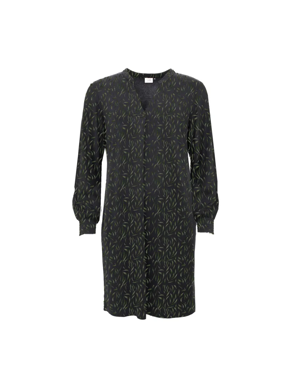 Naisten tunikamekko, jossa on väljä istuvuus. Tunika laskeutuu mukavasti viskoosin ansiosta. Tunikassa on v-pääntie ja pitkien hihojen suulla on smokkirypytystä.