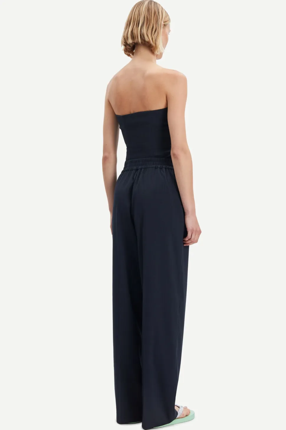 Rennot leveälahkeiset housut, joissa joustovyötärö. Tuote on GRS -sertifioitu.