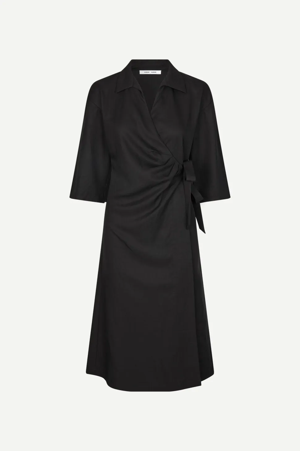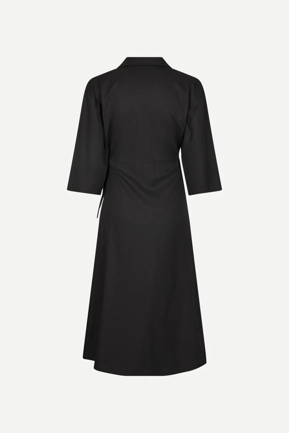 Regular fit istuvuuden midimekko. Vyötäröltä solmittava ja sisäpuolella nappikiinitys.