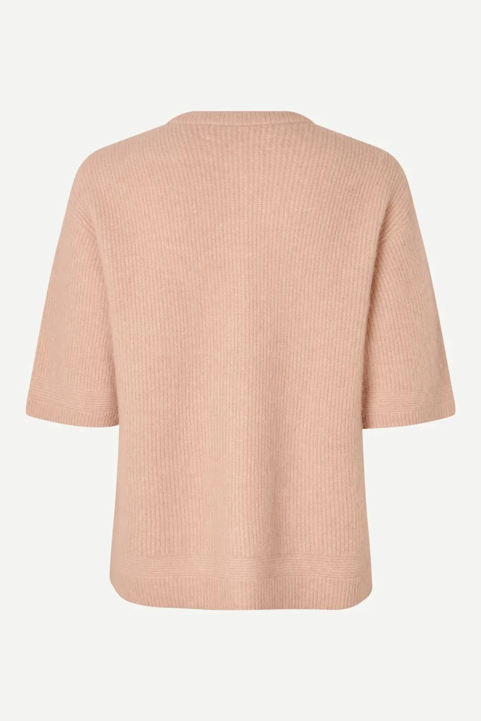 Lyhythihainen neuletakki, jossa normaali istuvuus ja madalletut olkapäät. Napitus edessä. Ribattu kaulus, hihansuut ja helma. Pyöreä pääntie. Päämateriaali on valmistettu joustavasta sekoituksesta, jossa on alpakanvillaa ja villaa. Tämä tuote on RWS-sertifioitu. RWS valvoo ja sertifioi eläinten hyvinvointia ja maankäyttöä koskevia käytäntöjä villakuidun tuotannossa ja seuraa sertifioitua materiaalia tilalta lopputuotteeseen.