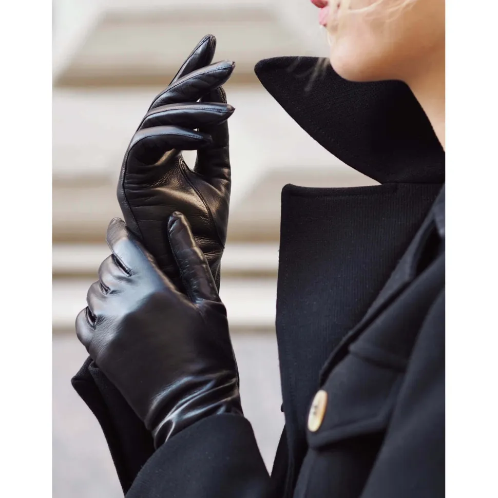 - Ruskeat naisten nahkakäsineet villavuorilla