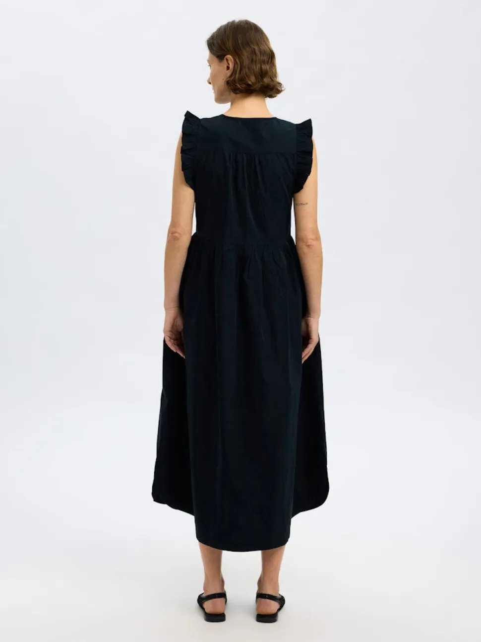 Lisätiedot: röyhelöt, vyö mukana, vyötäröllä leikkauslinja