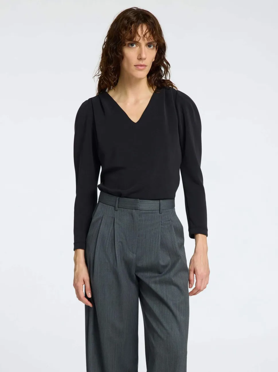 Yksinkertainen mutta tyylikäs pitkähihainen paita. Olkapäillä on kaunista laskostusta.