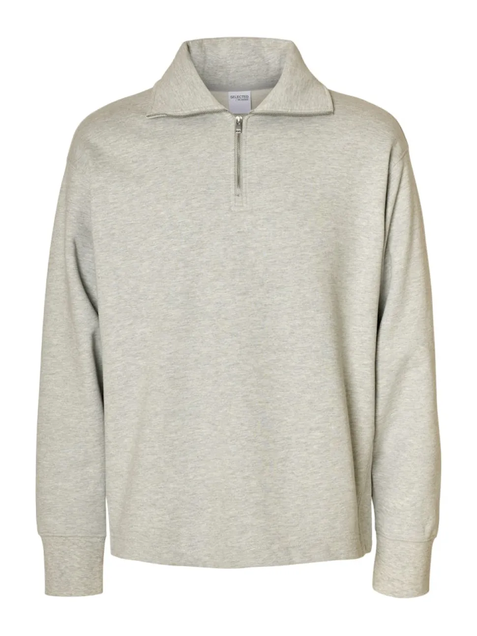 Rento ja monikäyttöinen vetoketjullinen collegepaita vaaleanharmaassa sävyssä, valmistettu pehmeästä puuvillasta. Huppari on suunniteltu arkikäyttöön ja se yhdistyy vaivattomasti niin farkkujen kuin treenihousujen kanssa, täydellinen valinta vapaa-ajan asuun tai kerrospukeutumiseen.