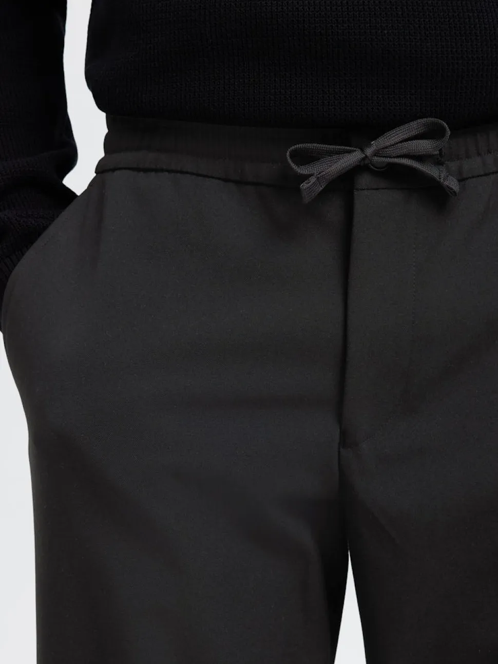 Selected 196 Straight Fit Trousers on monikäyttöinen ja tyylikäs miesten suorat housut, jotka yhdistävät huolitellun ilmeen ja käyttömukavuuden arkeen ja smart‑casual‑tyyliin. Housuissa on elasticated waistband eli joustava vyötärö, jonka kiristysnyöri takaa mukavan istuvuuden ilman rajoittavaa tuntua. Mid‑waist‑vyötärö sekä suora lahjemalli tekevät näistä housuista helposti yhdistettävän esimerkiksi T‑paidan ja tennareiden kanssa rennompaan tyyliin tai kauluspaidan ja pukineiden kanssa siistimpään kokonaisuuteen. Edessä on faux fly ‑yksityiskohta, takataskut, ja design on minimalistinen mutta laadukas, sopien moniin eri tyyleihin ja tilanteisiin.