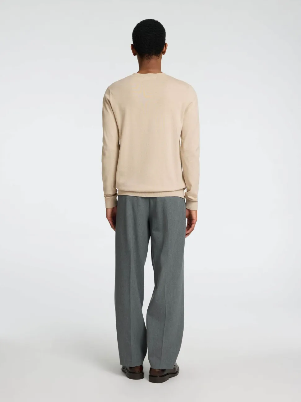Miesten pitkähihainen neule, pyöreä pääntie. Olkapäillä neulotut yksityiskohdat, helmassa ja hihansuissa resorit. Valmistettu pehmeästä pimapuuvillasta.