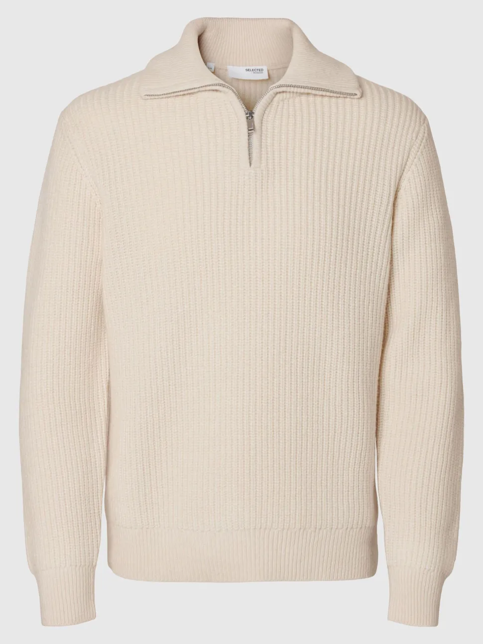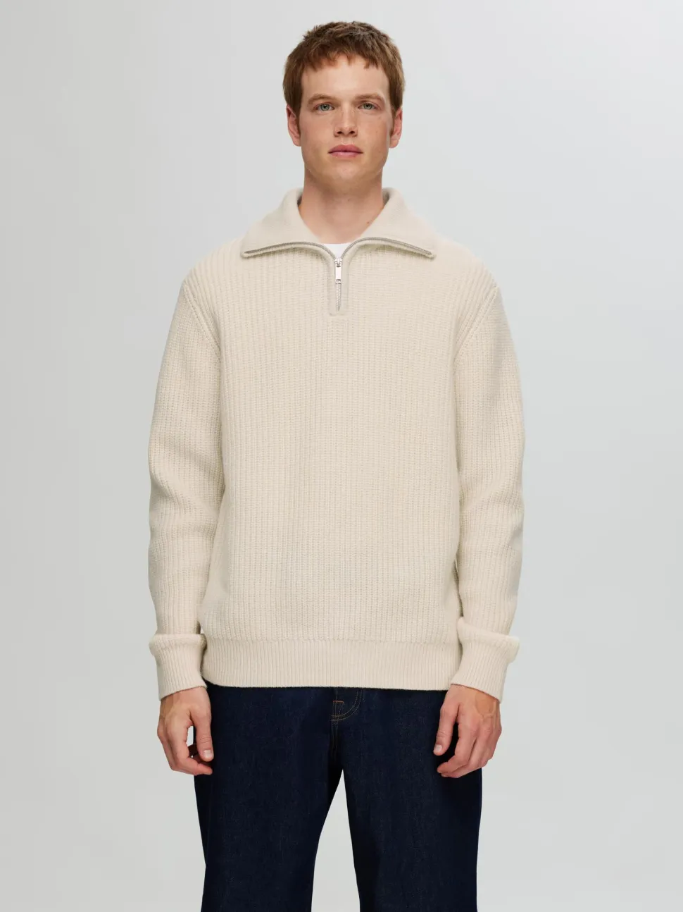 Mieste neulepusero ns. patenttineuletta, jossa korkea kaulus puolivetoketjulla .