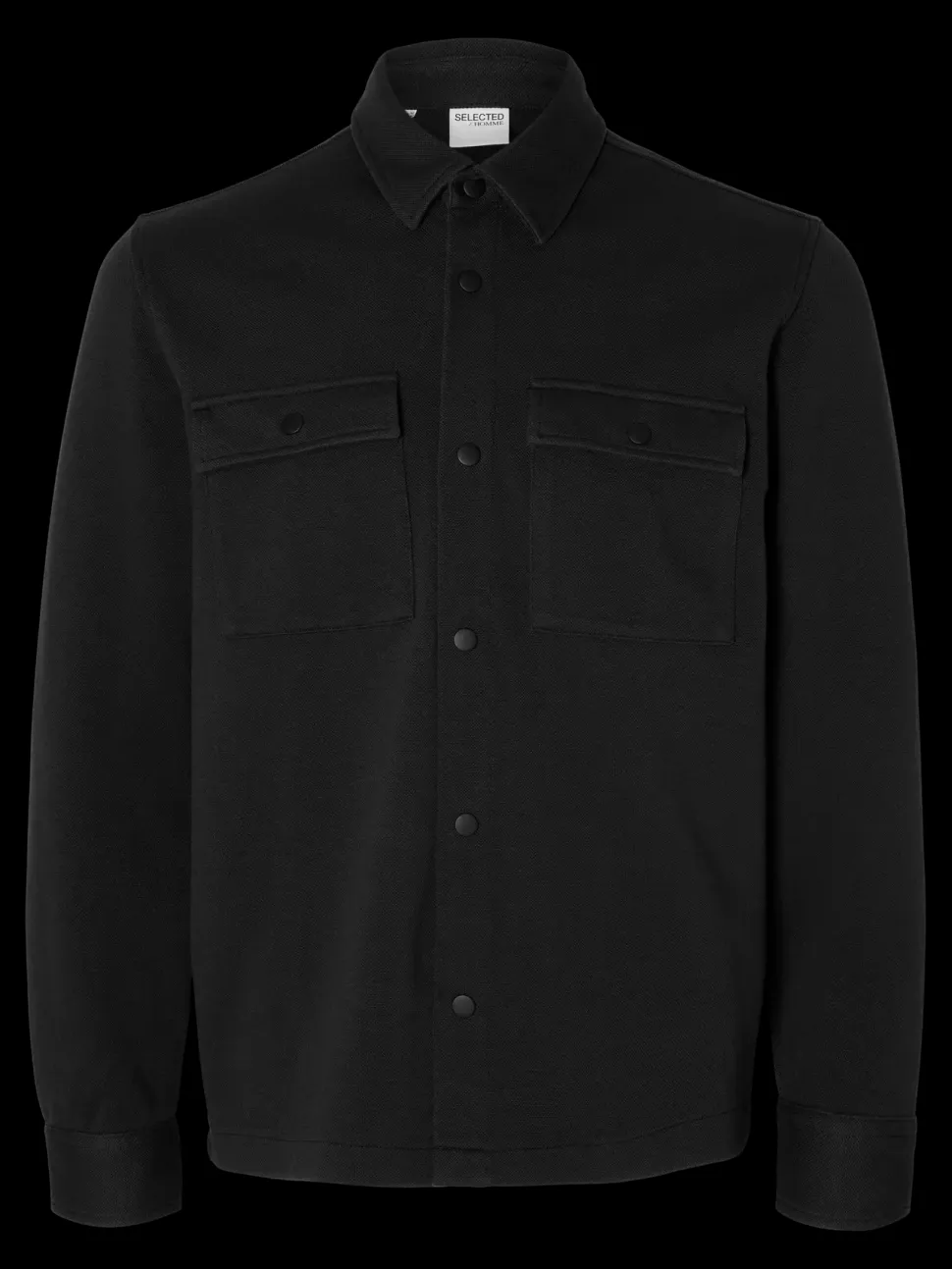 Selectedin rento ja trendikäs paitatakki. Kaulukset ja nepparikiinnitys edessä. Läpälliset rintataskut nepparilla. Materiaali joustavaa ja pehmeää luomupuuvillasekoitetta.