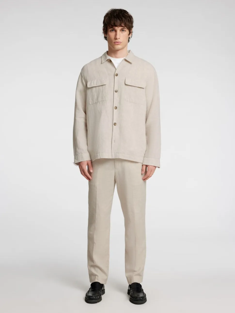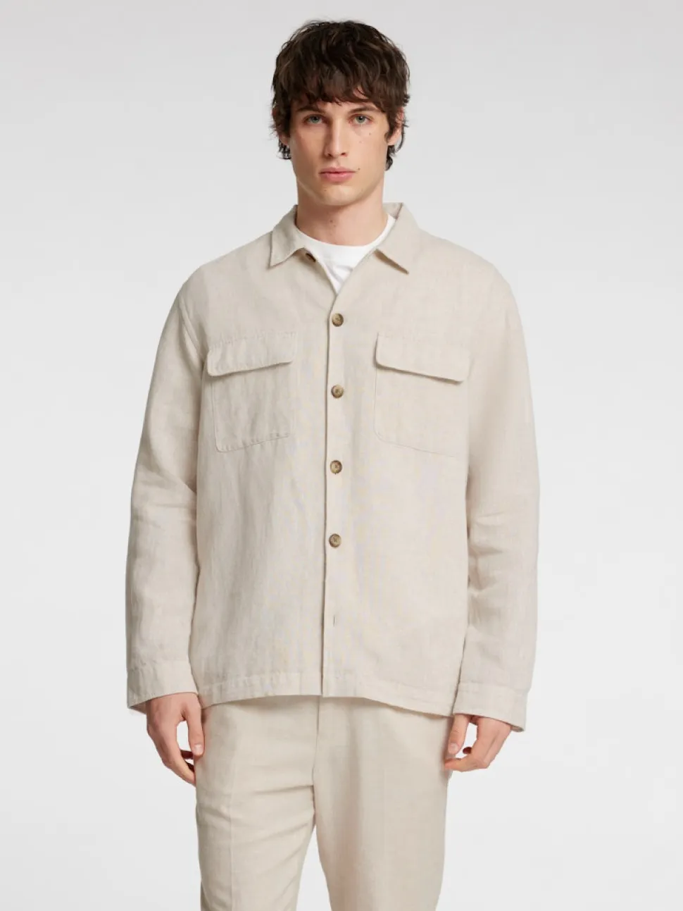 Tämä overshirt on täydellinen kevyt kerros lisätä vaatekaappiisi tällä kaudella. Se sisältää puuvillaa ja pellavaa, mikä tekee siitä erityisen hengittävän ja mukavan, ja se voidaan muotoilla auki T-paidan päälle tai napittaa denimillä.