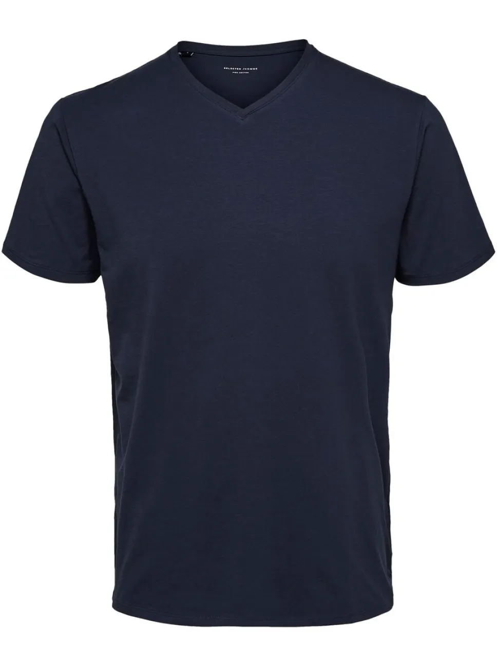 Selectedin yksivärinen t-paita. V-päätie, normaalimitoitus. Monikäyttöinen peruspaita töihin ja vapaa-aikaan. Koossa L pituus n.73 cm.
