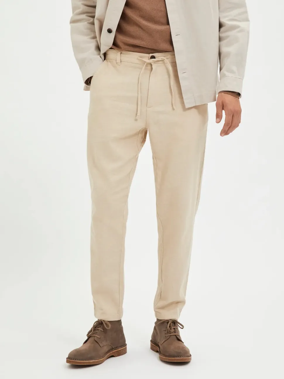 Mikä huutaa ”kevättä” enemmän kuin pellava? Nämä puuvilla-pellavasekoitehousut ovat täydellinen yhdistelmä mukavuutta ja kestävyyttä. Niissä on keskivyötärökorotus kiristysnyörillä, joka ei ole vain säädettävissä, vaan antaa myös rentoa tunnelmaa. Suosittelemme muotoilemaan ne t-paidalla, napittamattomalla päällyspaidalla ja nahkaisilla kalastajasandaaleilla. – Keskivyötäröllä laskettu nousu – Vetoketjullinen sepalus nappeilla – Säädettävä kiristysnauhakiinnitys – Vyölenkit – Viistot sivutaskut – Hitsatut takataskut napeilla – Kapeneva jalka – Rento istuvuus