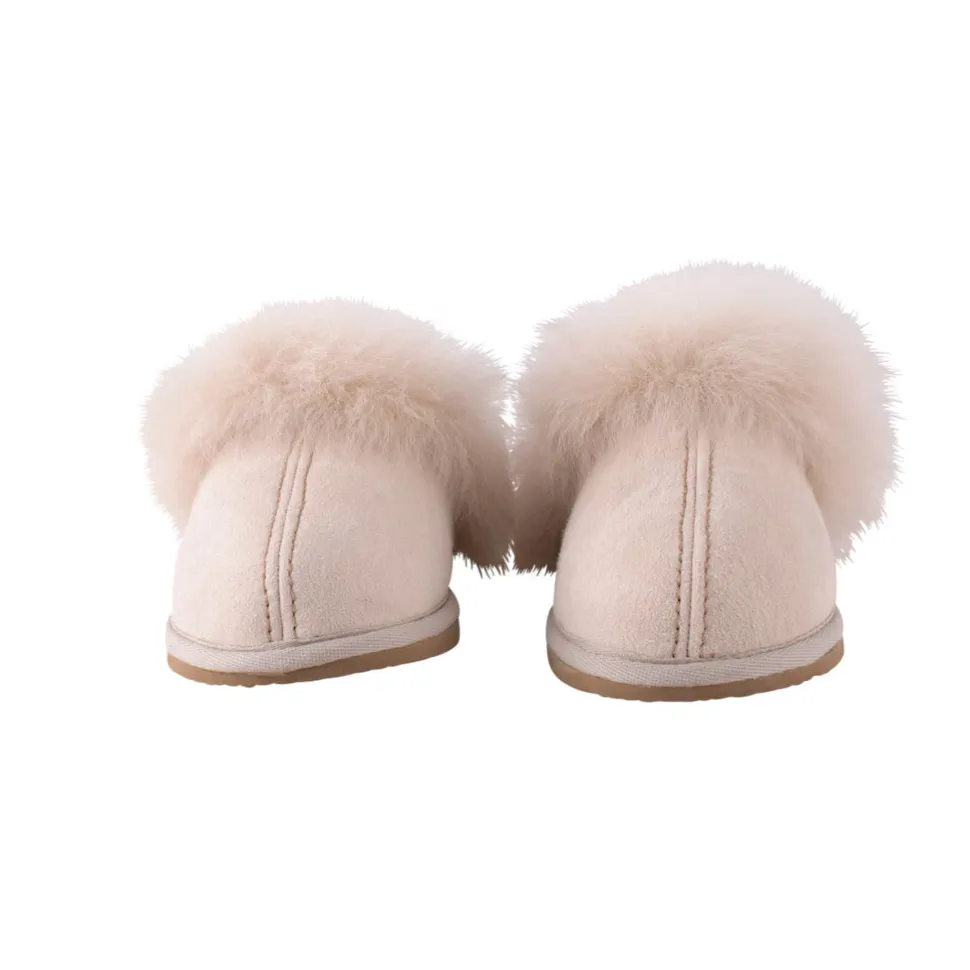 Shepherd of Sweden Evelina lampaannahkatossut ovat laadukkaat ja mukavat sisätossut, jotka yhdistävät perinteisen käsityöosaamisen ja pohjoismaisen designin. Nämä klassiset naisten lampaannahkatossut on valmistettu pehmeästä ja lämpimästä aidosta lampaannahasta, joka tarjoaa luonnollista eristystä ja hengittävyyttä – täydellinen valinta kodin rentoihin hetkiin tai viileämpiin päiviin. Tossujen pehmeä vuori tuntuu miellyttävältä ihoa vasten ja muotoutuu jalkaan käytön myötä, kun taas kaunis vaalea sävy tuo luonnollista ja eleganttia tyyliä kotiin. Shepherd of Swedenin klassinen muotoilu ja huolella valitut materiaalit tekevät Evelina-tossuista kestävän ja ajattoman lisän jokaisen vaatekaappiin.