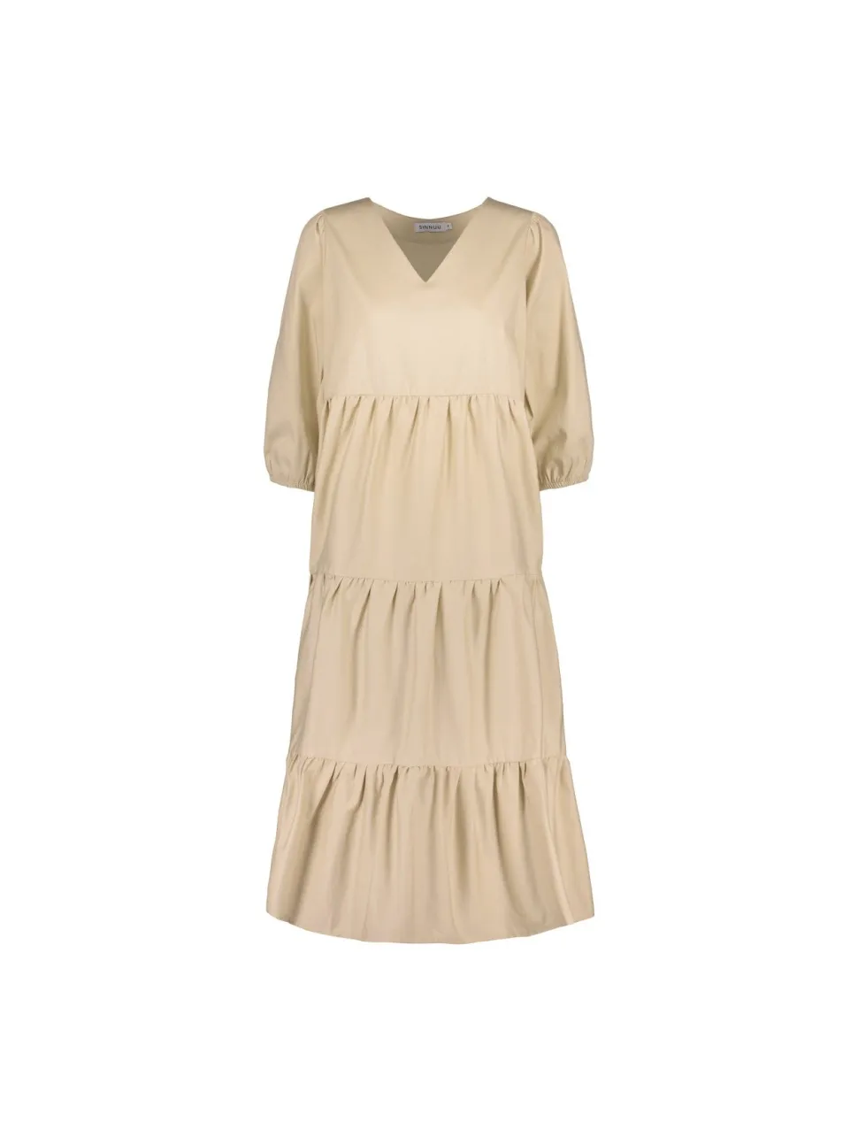Kotimaisen Sinnuun LUX-mekko on upea valinta niin arkeen kuin juhlaan. Mekossa on näyttävä, leveä frillahelma ja kauniisti pussittavat 3/4-mittaiset hihat, joiden hihansuissa joustavat kuminauhat. Mekon v-pääntie keventää kokonaisuutta ja saa sen istumaan käyttäjälleen kauniisti. Tämän puuvillaisen maximekon materiaali on ryhdikästä ja sen pinnassa on kaunis, himmeä kiilto. Pieni määrä elastaania lisää mekon käyttömukavuutta ja tekee siitä miellyttävän tuntuisen päällä. Käytännöllisyyden ja mukavuuden viimeistelevät mekossa olevat taskut.