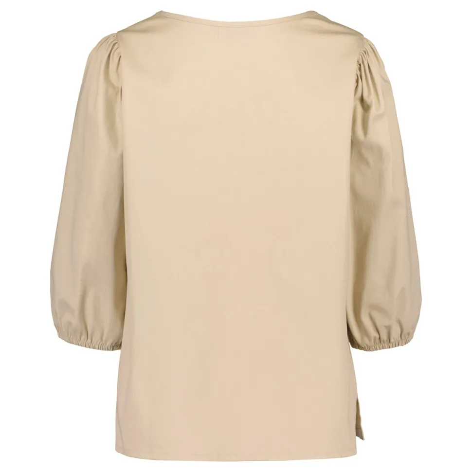 Kotimaisen Sinnuun LEA-pusero on upea valinta niin arkeen kuin juhlaan. Kangaspuserossa on pyöreä pääntie ja 3/4-mittaiset, kauniisti pussittavat hihat. Hihojen istutuksessa on naisellinen rypytys ja hihansuissa kuminauhat. Puserossa on hieman helmaa kohti levenevä malli ja helmassa pienet sivuhalkiot. Tämän puuvillaisen puseron materiaali on ryhdikästä ja sen pinnassa on kaunis, himmeä kiilto. Pieni määrä elastaania lisää puseron käyttömukavuutta ja tekee siitä miellyttävän tuntuisen päällä.