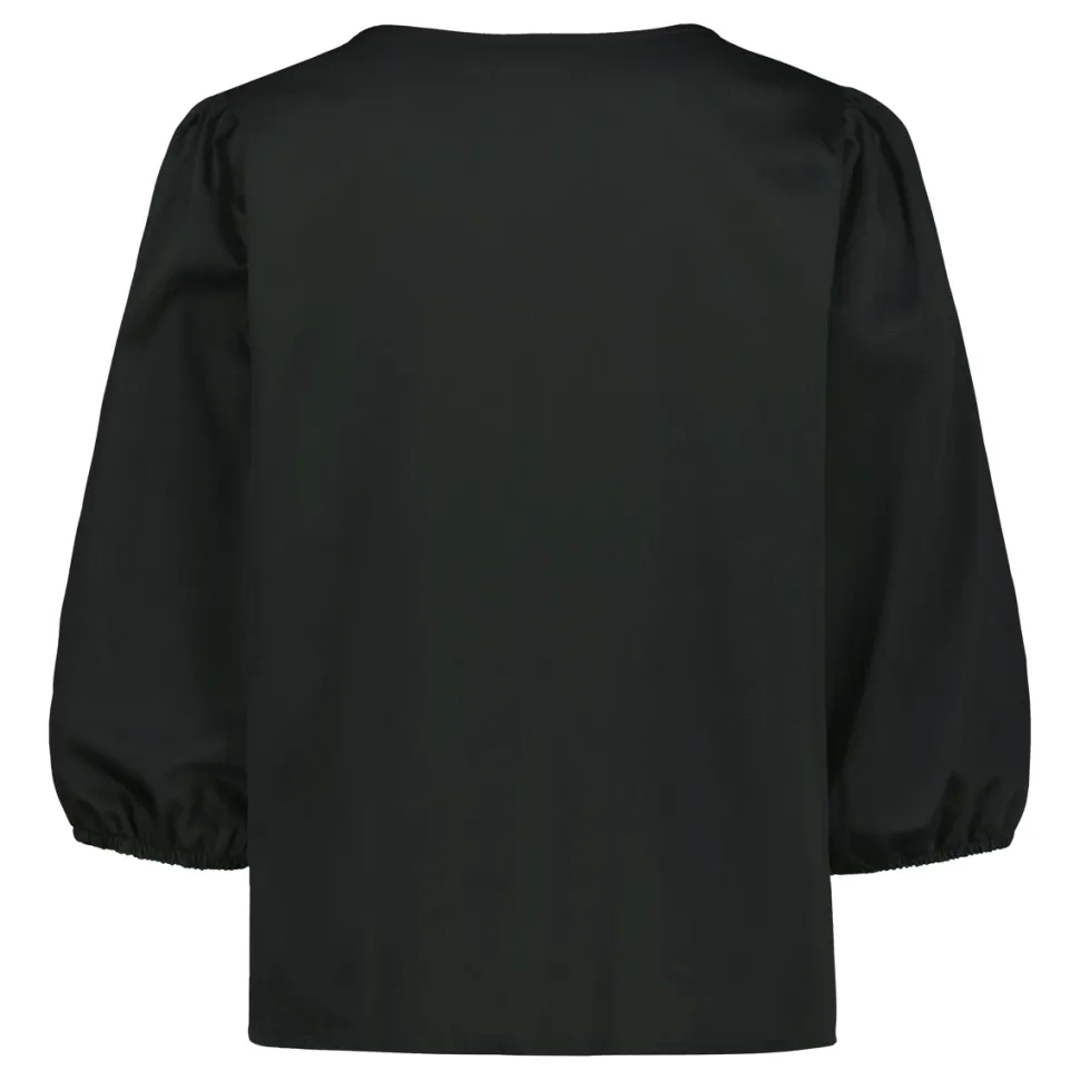 Kotimaisen Sinnuun Nora-pusero on näyttävä ja monikäyttöinen valinta niin arkeen kuin juhlaan. Kangaspuserossa on v-pääntie ja 3/4-mittaiset, kauniisti pussittavat hihat. Hihojen istutuksessa on naisellinen rypytys ja hihansuissa kuminauhat, jotka antavat hihoille muhkeamman muodon. Puserossa kauniin väljästi istuva malli. Materiaali on ryhdikästä puuvillaa ja kankaan pinnassa on hienostunut, himmeä kiilto. Pieni määrä elastaania lisää käyttömukavuutta ja tekee puserosta miellyttävän tuntuisen päällä.