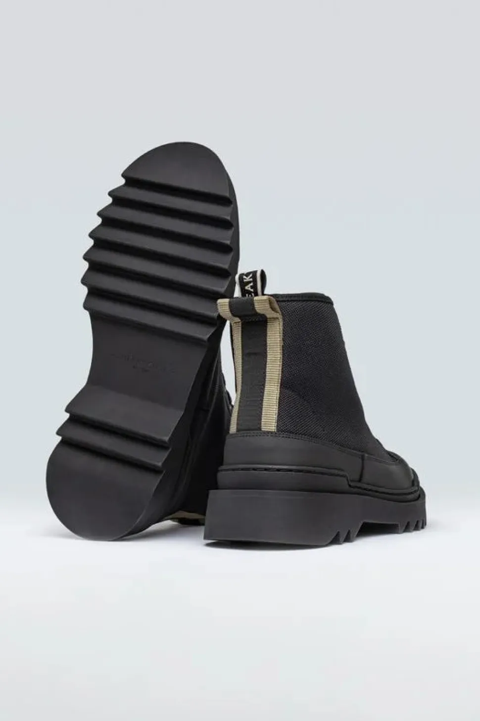 Kamiki High on näyttävä, korkeavartinen sneaker-boot hybridi. Se on valmistettu karkeasta kudotusta nylonista ja nahasta, ja siinä on polyesterireunus sekä vuori, joka on valmistettu luomupuuvillasta.