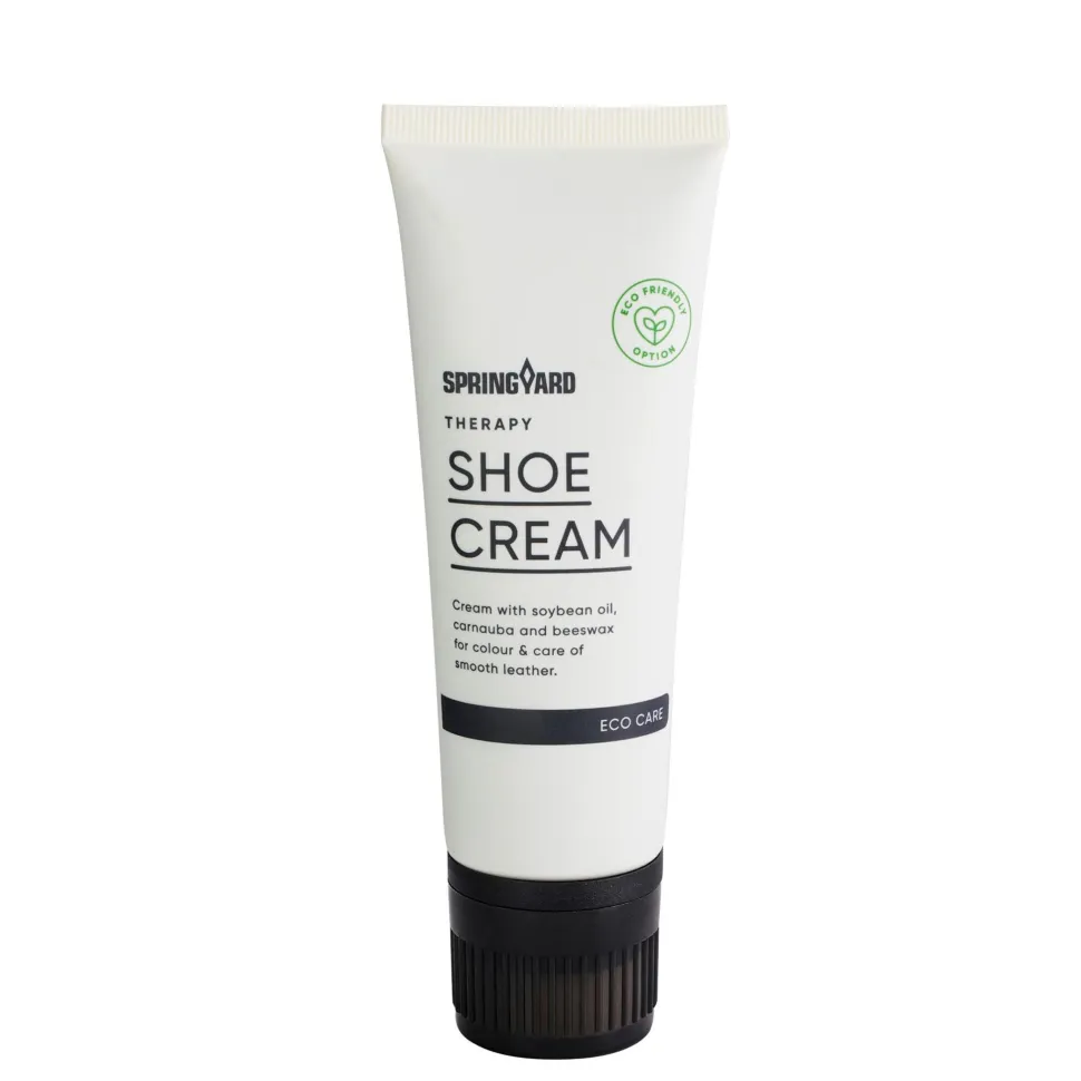 Springyard helppokäyttöinen vesipohjainen kenkävoide. Voide antaa kengille syvän väripigmentin sekä tarjoaa kevyen suojan lialta ja kosteudelta. Kenkävoide sisältää luonnollisia vahoja ja öljyjä. Tuote on täysin liuotteeton ja tuoksuu raikkaalta. 75 ml.