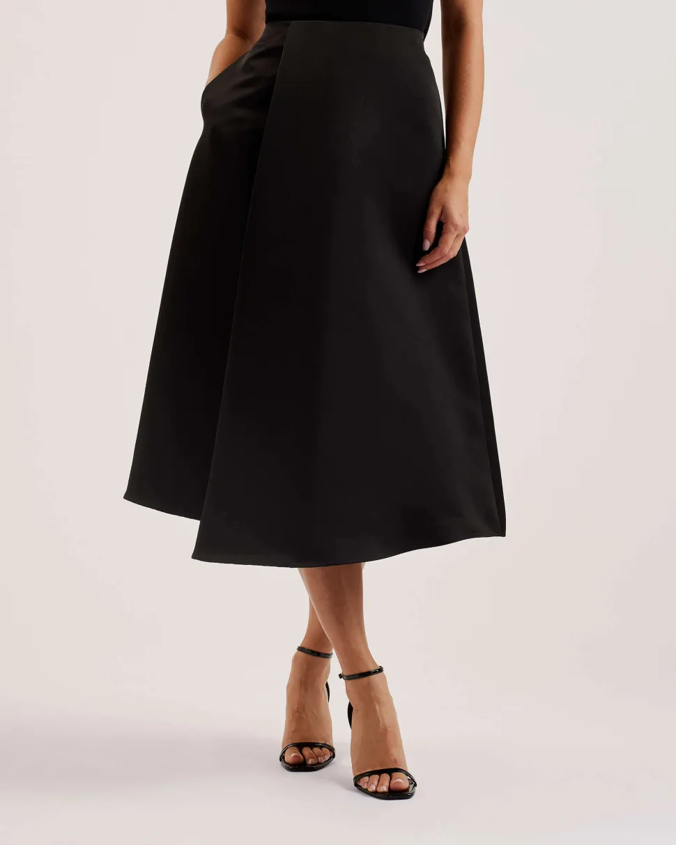 Ted Bakerin Erva-satiinihame on elegantti valinta niin arkeen kuin juhlaan. Midimittaisessa hameessa on hienosti laskeutuva satiinikangas, joka luo kauniin siluetin. Hameessa on asymmetrinen helma, joka antaa sille modernin lookin. Yhdistä se esimerkiksi toppiin ja korkokenkiin juhlaan tai rentoon t-paitaan ja tennareihin arkiseen tyyliin.
