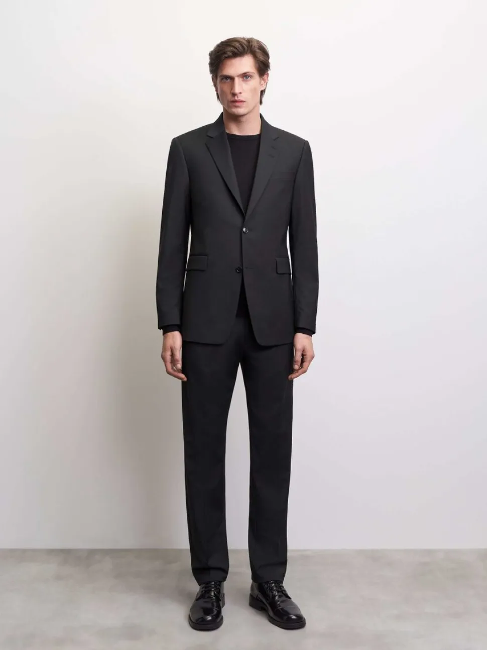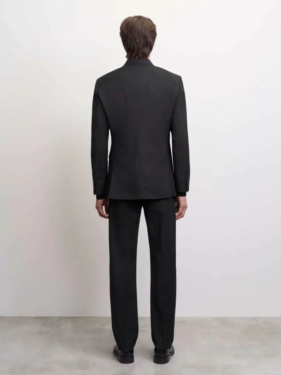 – Normaali istuvuus – Kahden napin sulkeminen – Pehmeä olkarakenne – Sivuhalkiot takana – Malli on 186 cm pitkä ja käyttää kokoa 48 Yhdistä koko puvuksi tuotteen 231-M70699-TENUTAS kanssa.