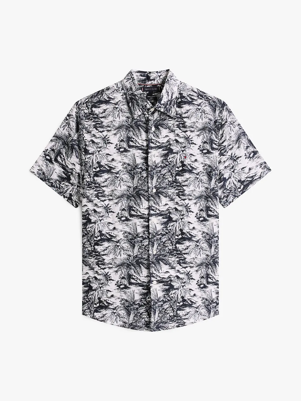 Tommy Hilfigerin Tropical Print Pure Linen -kauluspaita tuo kesäisen tunnelman pukeutumiseesi. Valmistettu 100 % puhtaasta pellavasta, tämä lyhythihainen paita tarjoaa hengittävyyttä ja keveyttä lämpimiin päiviin. Tropiikkiaiheinen printti ja rento leikkaus tekevät siitä täydellisen valinnan niin rantalomalle kuin kaupungin kaduille.