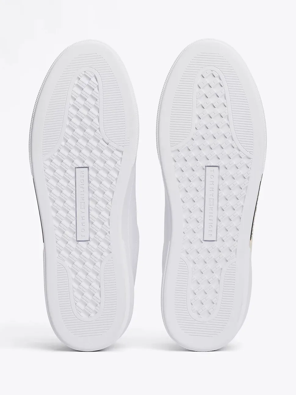 Tommy Hilfigerin nahkaiset tennarit, joissa on metalliset yksityiskohdat.