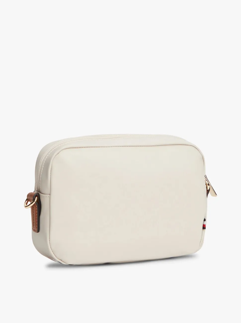 Kompakti ja tyylikäs Tommy Hilfiger ‑crossbody‑kamera‑laukku, joka yhdistää funktionaalisuuden ja brändin tunnistettavan ilmeen. Laukun pääosasto suljetaan vetoketjulla, ja sisällä on erillinen vetoketjullinen sisätasku, jossa tärkeät pikkutavarat pysyvät järjestyksessä. Lisäksi ulkopuolella on toinen vetoketjulla suljettava tasku, joka tuo helppoa säilytystilaa käyttöesineille.