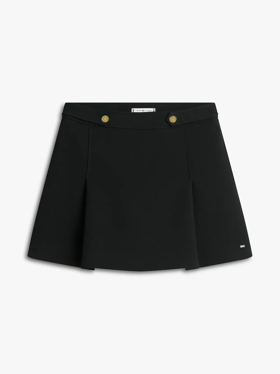 Tämä Tommy Hilfiger Box Pleat A‑Line Mini Skirt yhdistää modernin ilmeen ja klassisen muotoilun. Hameen A‑linjan leikkaus ja huolitellut laskokset luovat elegantin ja imartelevan siluetin, joka toimii helposti eri asuyhdistelmien kanssa.