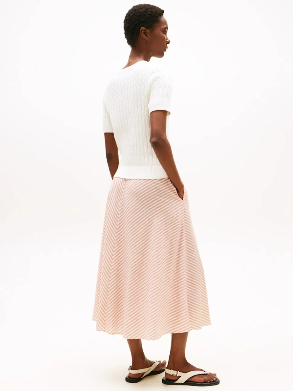 Tässä puuvillasta valmistetussa palmikkopuserossa on tyylikäs lyhythihainen siluetti.