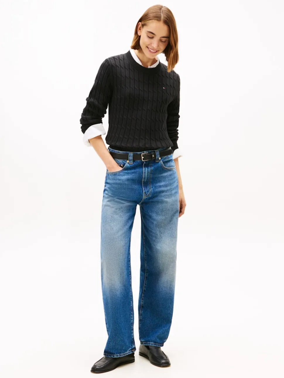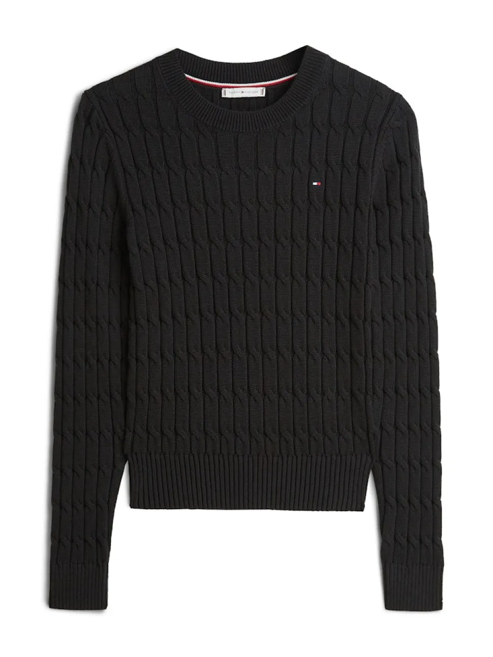 Tommy Hilfiger naisten neulepusero CO CABLE MID GG C-NK LS SWT, musta