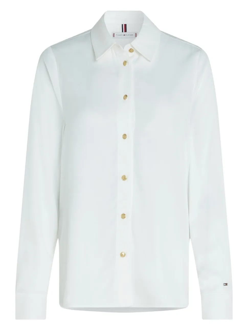 Tommy Hilfigerin pusero rennolla istuvuudella ja kontrastisilla kultanapeilla.