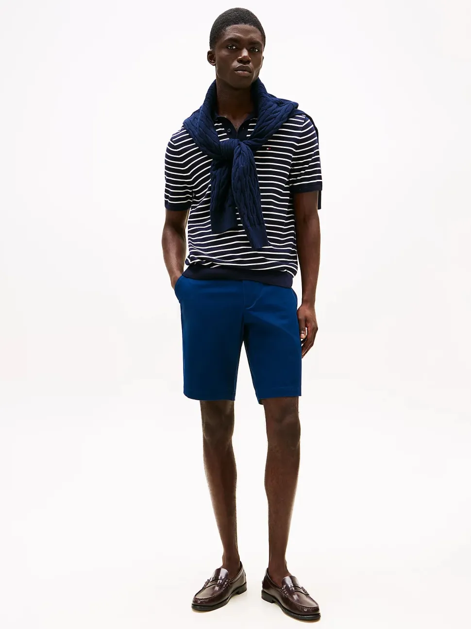 Nämä shortsit tarjoavat hienostuneen käytännöllisen tyylin räätälöidyn ulkonäön ja sivutaskujen ansiosta. Kohokohdat • Joustava puuvillatoimikas • Saatu Better Cotton Initiative -aloitteesta • Vetoketju nappeilla • Kaksi reisitaskua • Kaksi napillista takataskua • Tommy Hilfiger -brändäys Muoto & istuvuus • Normaali istuvuus