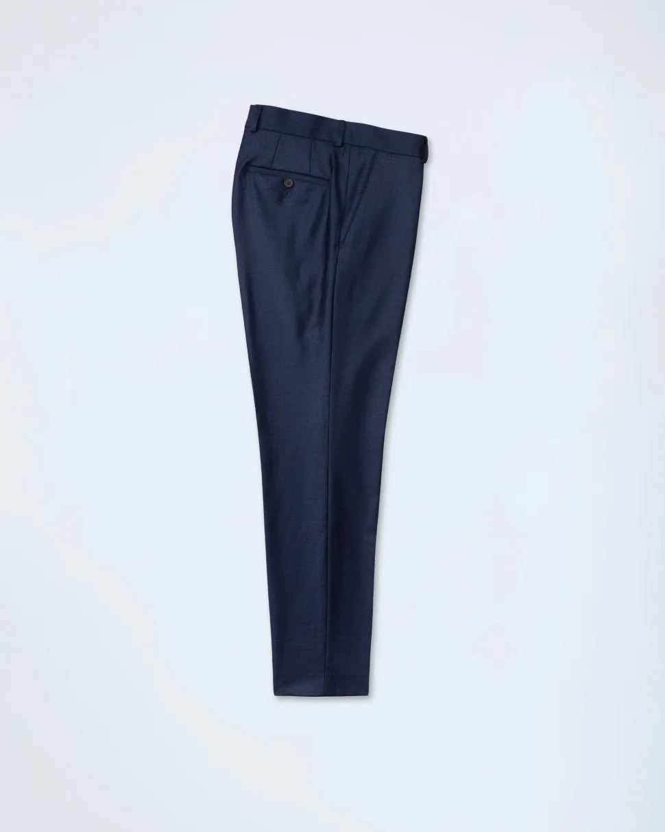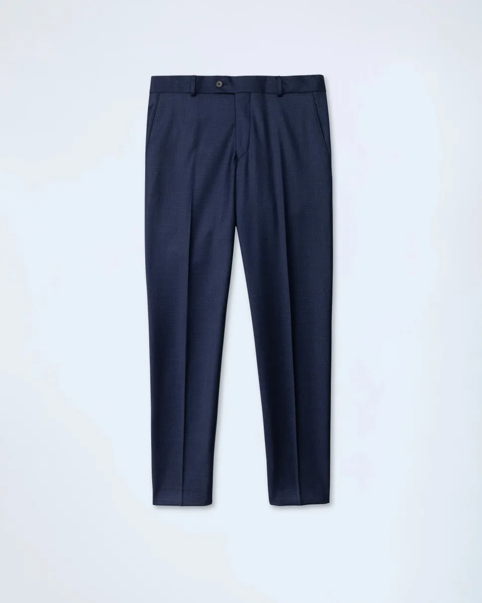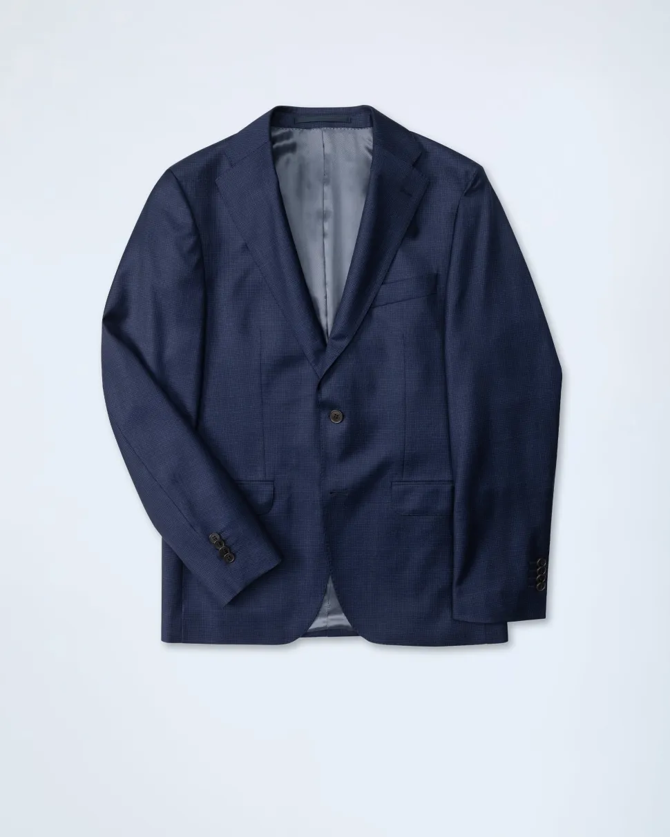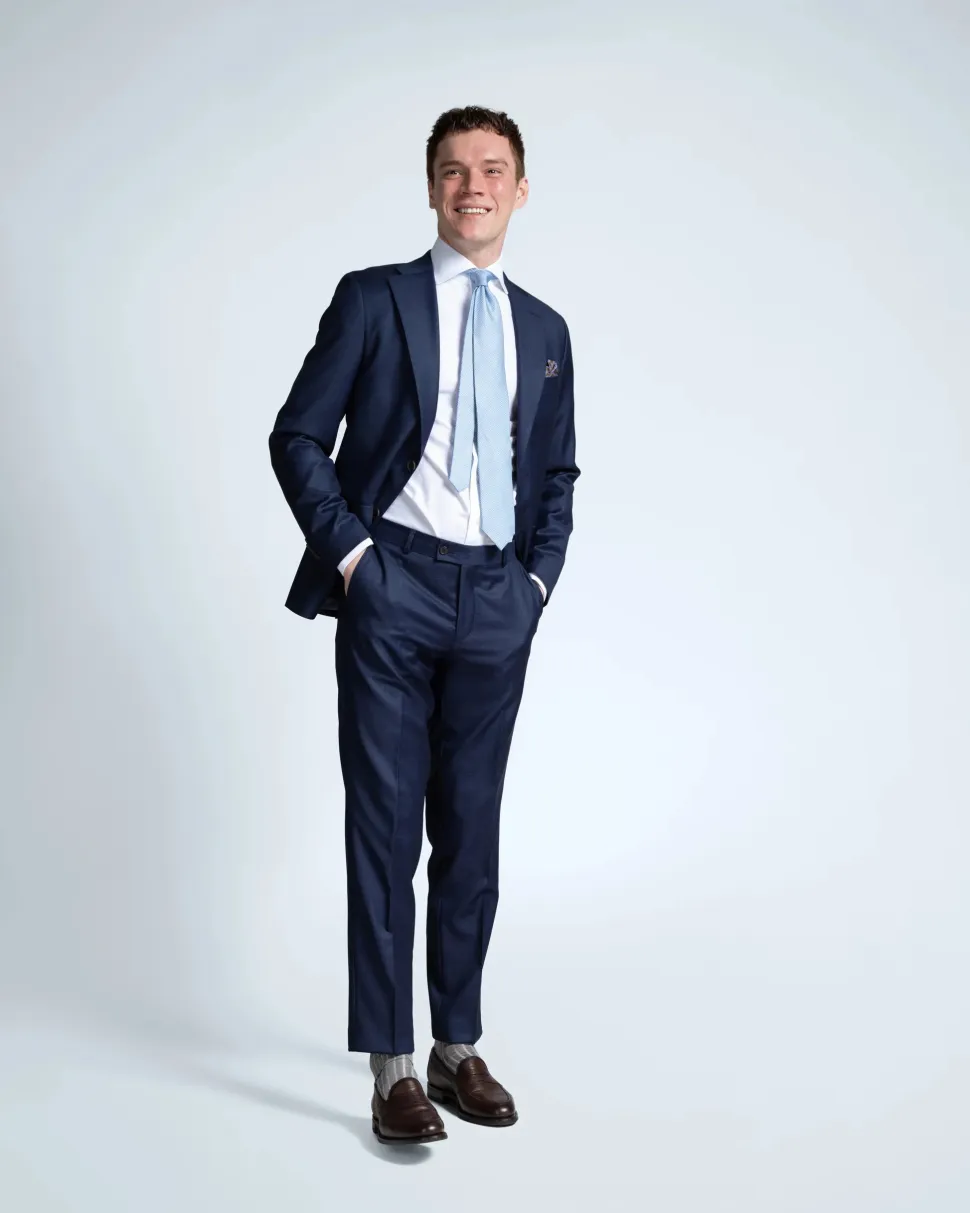 Tyylikäs tummansininen business-puku. Laadukkaassa ja ilmavassa Redan Super S110’s villakankaassa tyylikäs mikroruutukuosi. Tästä puvusta suorastaan huokuu karisma ja eleganssi. Puku leikattu Modern fit-malliin.