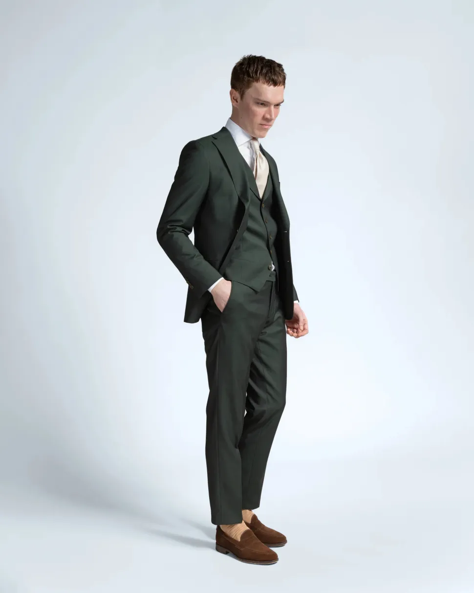 Elegantti tummanvihreä puvunhousu upealla Marlanen Super 100’s villakankaalla. Slim fit -leikkaukseen tehty housu jonka syvä vihreä sävy on luonteva sekä työkäytössä, että kaikissa sesongin juhlatilaisuuksissa. Tumma väri sopii myös ympärivuotiseen käyttöön. Puvun takki ja housut myydään erikseen.