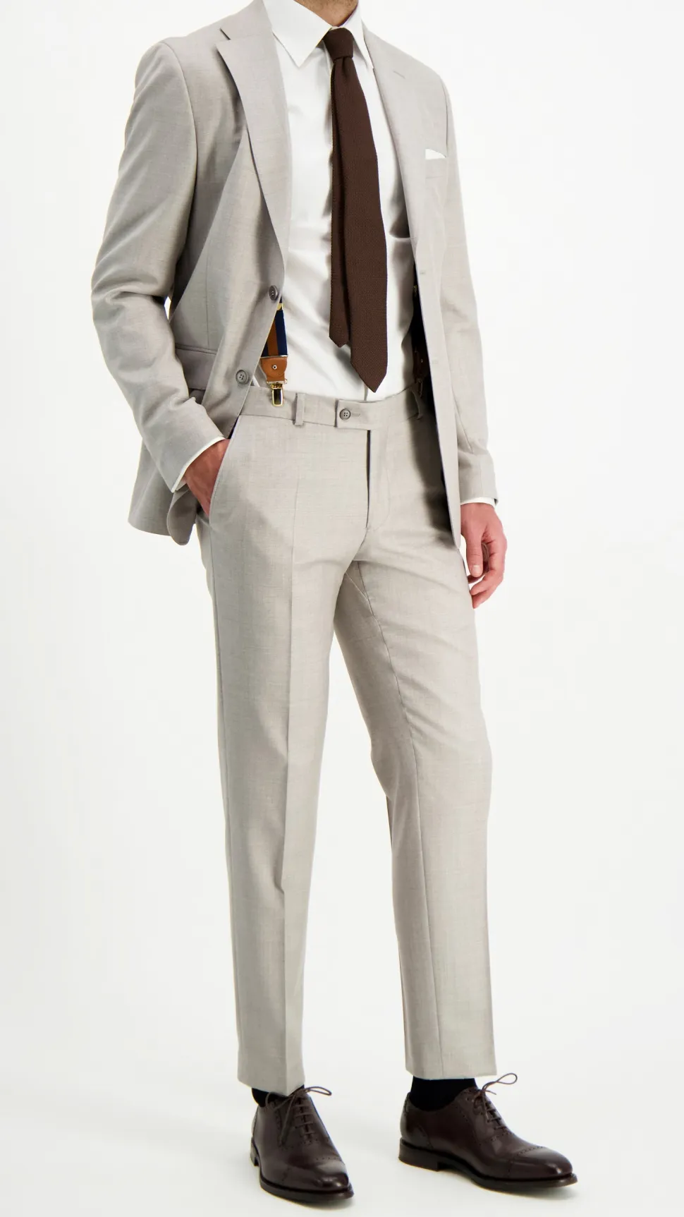 Tyylikäs ja juhlava shamppanjanvärinen puku joka on valmistettu upeasta Vitale Barberis Canonicon Super 110’s juhlavillasta..
