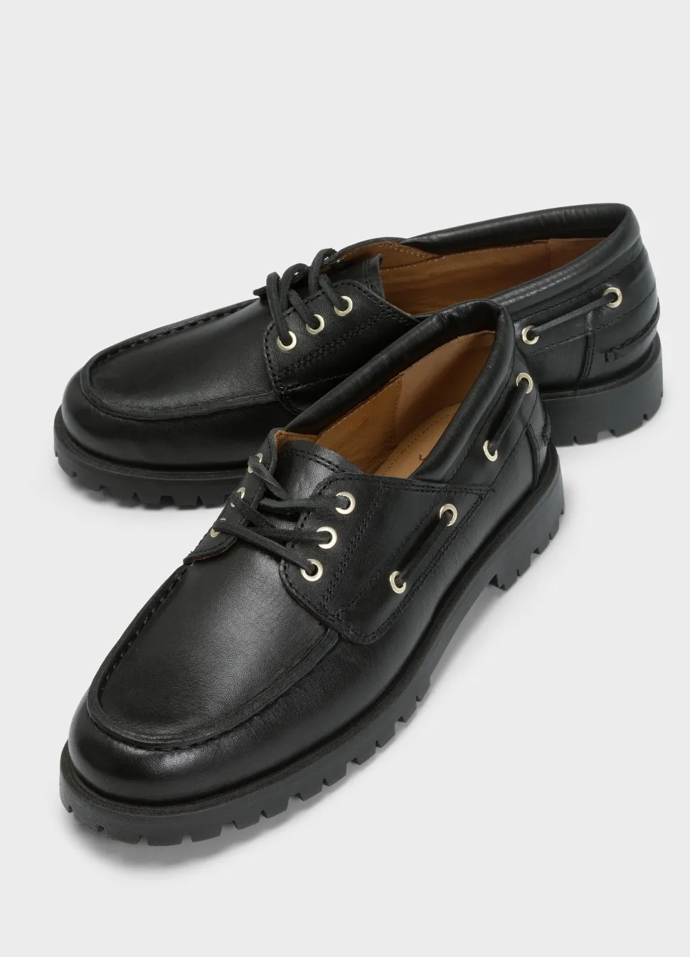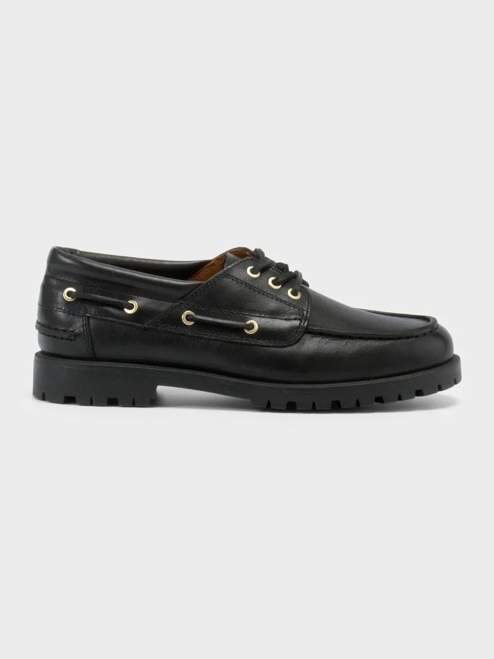Joslyn on päivitetyt purjehduskengät. Tyyli on valmistettu mustasta nahasta ja siinä on nahkanauhat. Korotetuissa ulkopohjissa on 14 mm matala korko.