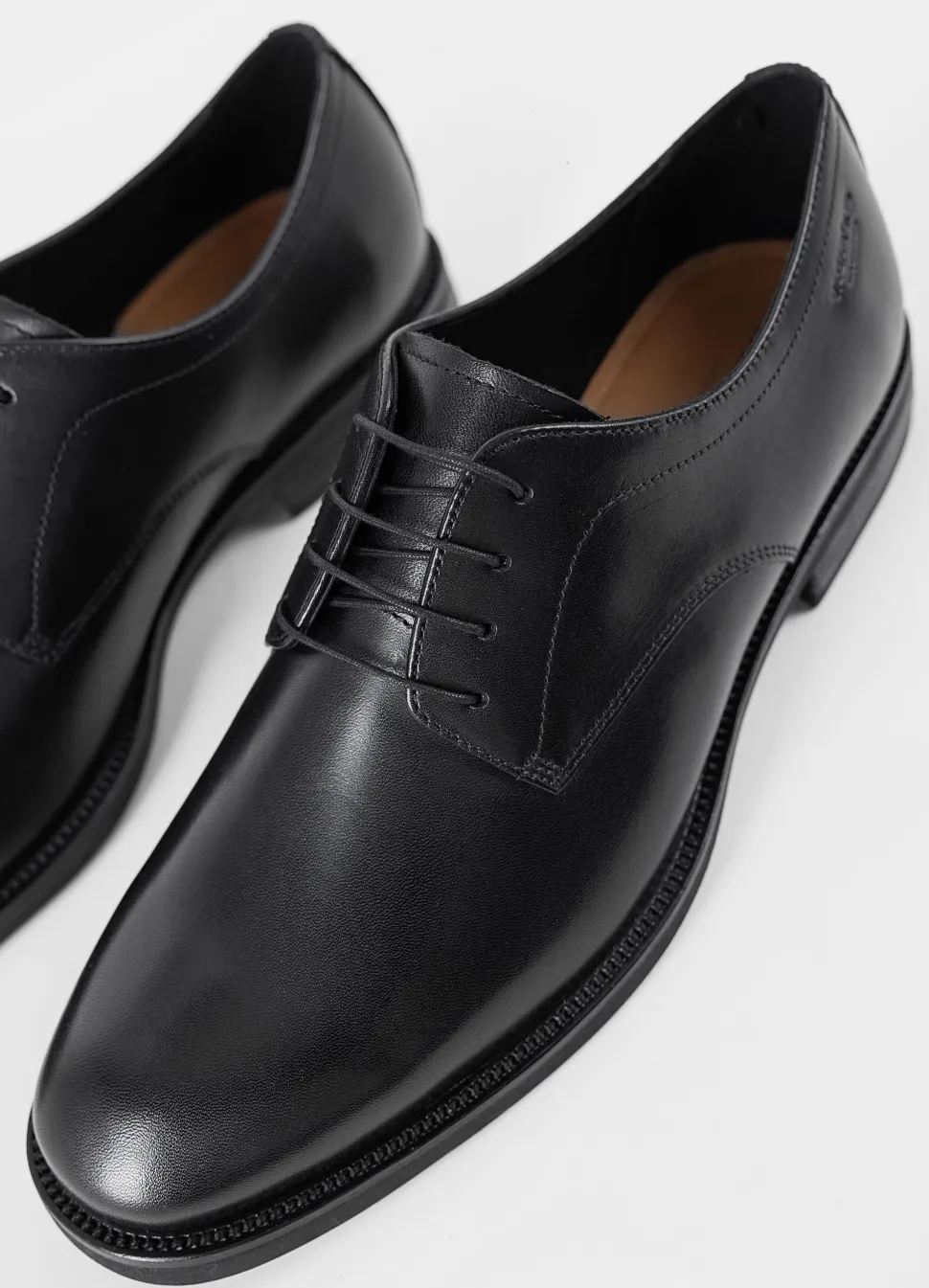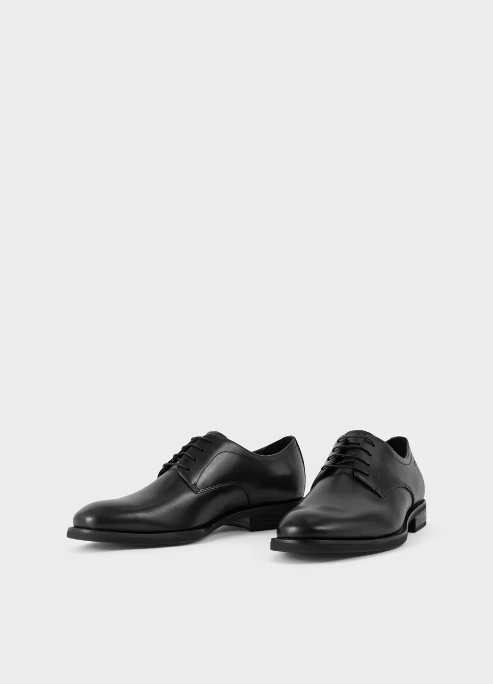 Mario on klassiset Derby-kengät hienostuneella ilmeellä. Hyvä juhla- ja pukukenkä. Mustasta nahasta valmistetuissa kengissä on klassinen derby-nauhoitus, pyöreät kärjet ja nahkaiset pohjalliset. Kengissä on myös nahkavuori. Matalat korot ovat 30 mm.