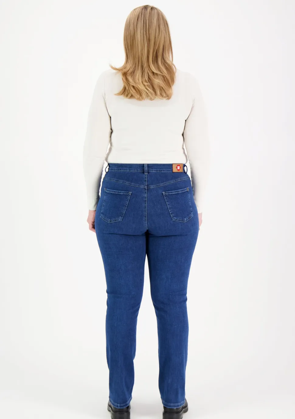 Naisellinen ja korkeavyötäröinen farkkumalli. Vyötärökorkeus on takaa korkeampi kuin edestä, joka parantaa housujen istuvuutta ja lantiolla on myös mukavasti tilaa. Materiaali on erittäin joustavaa joten, jos haluat napakan koon niin valitse yhtä kokoa pienempi kuin normaalisti.