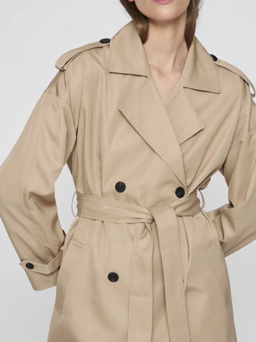 • Pitkä trenssi • Kaksirivinen • Vyötäröltä sidottava, irrotettava kangasvyö • Vyödetalji hihoissa ja hartioilla • Halkiodetalji • Kaksi taskua • Regular fit • Pituus: 115 cm koossa 38 • Hihan pituus: 62 cm koossa 38.
