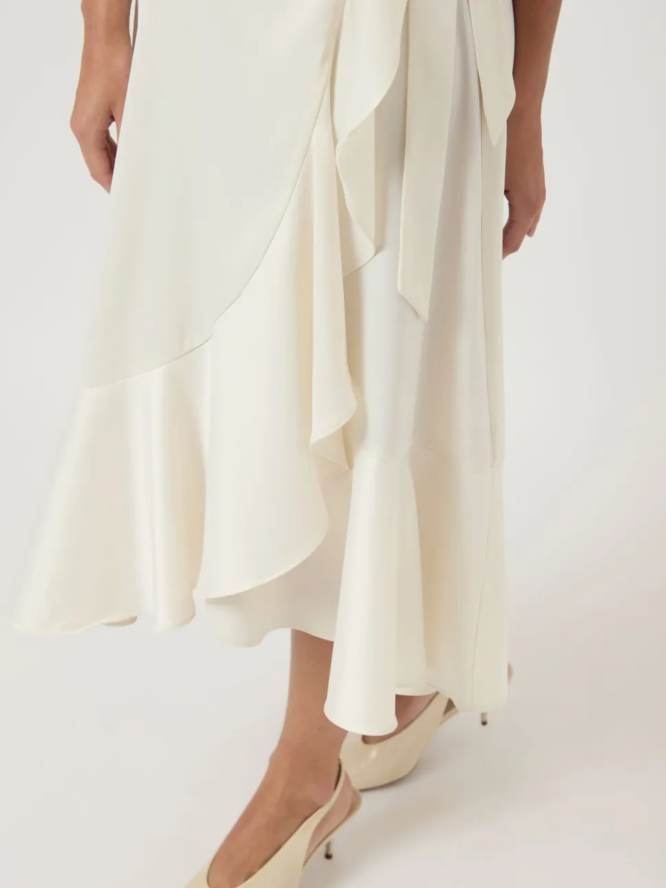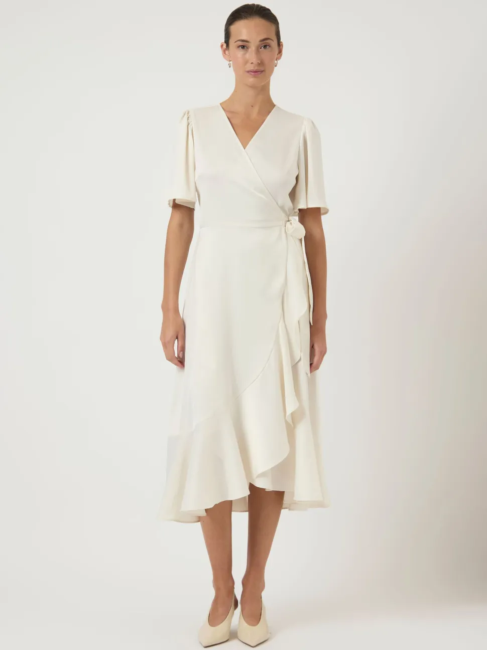 Y.A.S.:n kaunis kietaisumekko on täydellinen valinta, kun haluat yhdistää tyylikyyden ja mukavuuden. Mekossa on V-pääntie ja puolipitkät kellohihat, jotka lisäävät hienostuneisuutta. Vyötäröllä oleva sauma ja sivulla solmittava kiinnitysnauha korostavat kauniisti siluettia. Laskostetusti alaspäin levenevä helma luo naisellisen ja liikehtivän ilmeen. Mekko on valmistettu satiinista, joka antaa hienostuneen kiillon. Midipituinen ja normaalisti istuva malli sopii monenlaisiin tilaisuuksiin, olipa kyseessä sitten juhlat tai työtapaaminen.